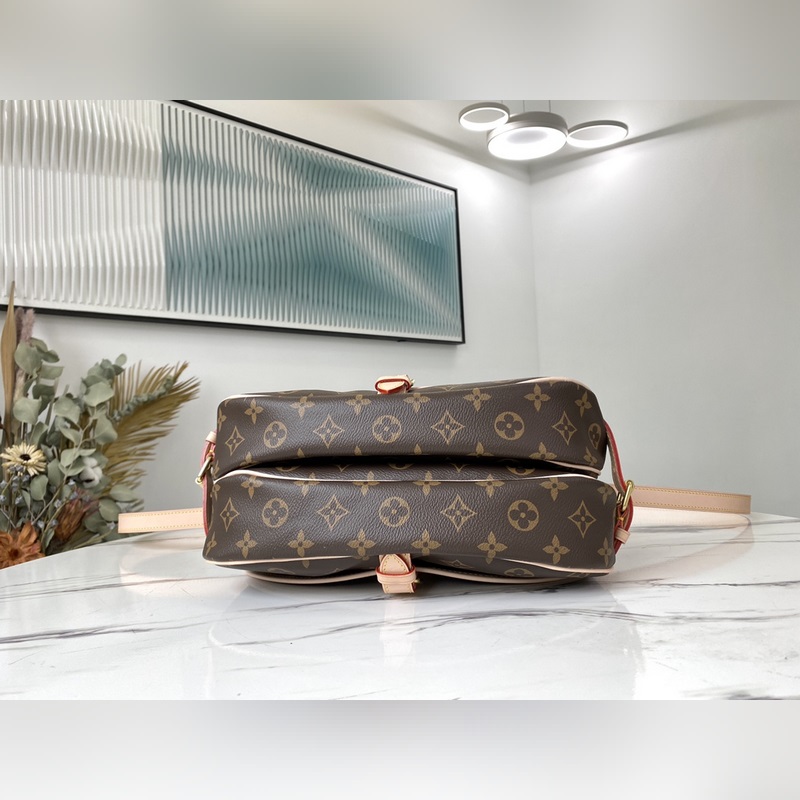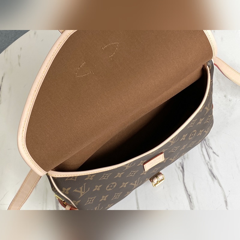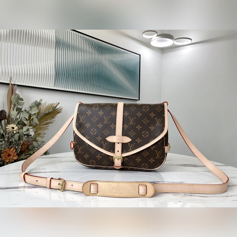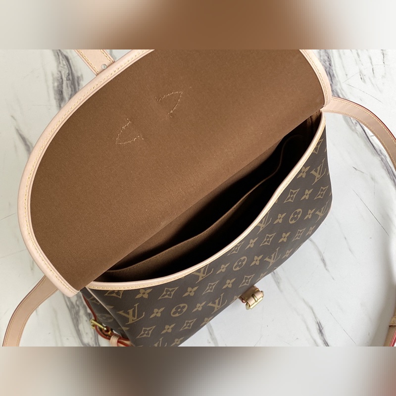 Monogram-kankaasta valmistettu Saumur medium käsilaukku osoittaa luonnollista eleganssia. Se on muodikkaampi, kun sitä käytetään ristissä, ja hieno lehmännahkainen koristelu hahmottelee erittäin naisellista muotoa. Koko: 28x11x20cm
