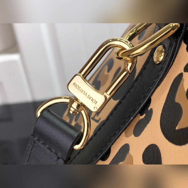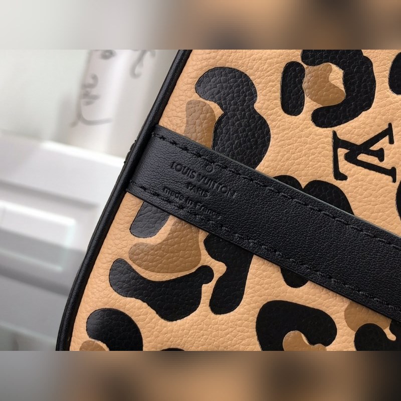 Speedy Bandoulière 25 palaa silmiinpistävästi Wild at Heart Fall 2021 -kapselikokoelmaan, jossa on ylisuuri Monogram Empreinte -nahalla kohokuvioitu LV ja sivuilla leopardikuvio. Toronin punotuissa kahvoissa on kokoelman tunnusmerkki, kun taas irrotettava olkahihna mahdollistaa kantamisen ristissä.