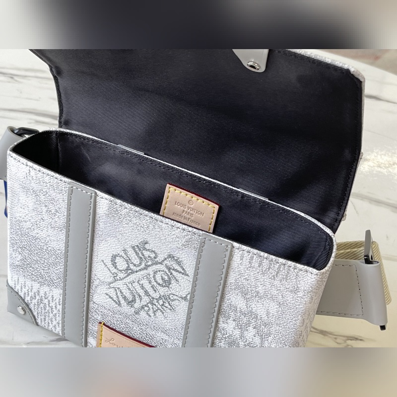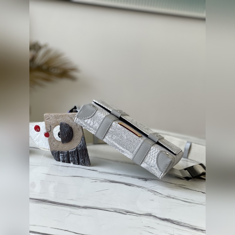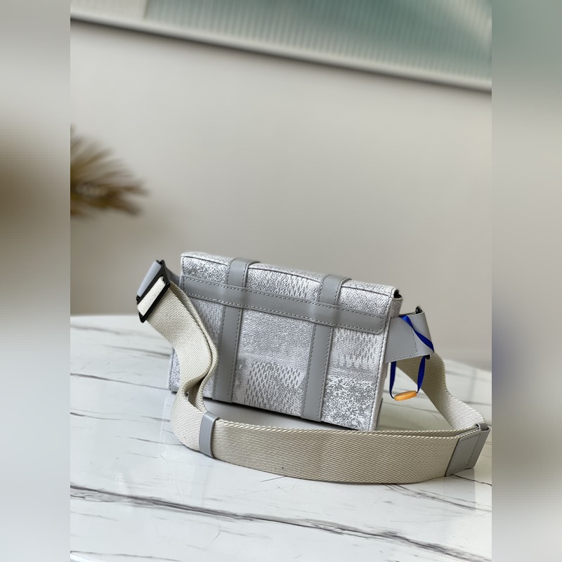 Uudesta Damier Salt -kankaasta valmistettu denimin ahdistava prosessi antaa klassiselle päällystetylle kankaalle uuden trendikkään tekstuurin. Kompakti muoto on yhdistetty säädettävän olkahihnan kanssa, joka sopii käytettäväksi ristissä tai vyötäröllä. Mitat: 20,5 x 14 x 4,5 cm