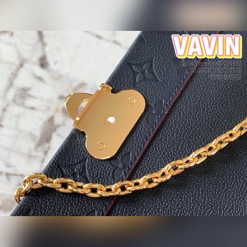 Tämä pieni VAVIN-käsilaukku on valmistettu sileän ja kohokuvioidun Monogram Empreinte lehmännahan sekoituksesta. Tässä Vavinin pienessä käsilaukussa on kiiltävä ja huomiota herättävä lukkomuotoilu. Pehmeä ja kevyt, muodikas ja rento, helppo valinta päivittäiseen kantamiseen. Säädettävällä nahkaketjulla varustettua sitä voidaan kantaa olkapäällä tai poikkivartalolla.
