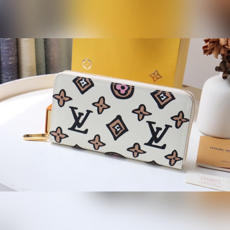 Tämä on tyyli tämän kauden Wild at Heart -kokoelmasta, jossa on eläinprintin tulkinta Monogrammi-kankaasta. Lompakon sisusta on koristeltu abstrakti leopardikuvio, ja siinä on useita lokeroita, taskuja ja luottokorttipaikkoja, joten se on loistava jokapäiväinen käsimatkatavara. Mitat: 19,5 x 10,5 x 2,5 cm