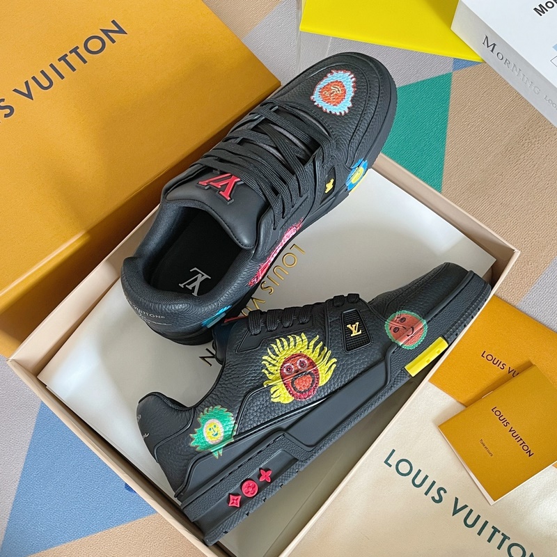 Alkuperäinen ostokehitys ja tuotanto Louis Vuitton x Yayoi Kusama -yhteistyösarja julkaisi rajoitetun erän LV x YK LV Trainer lenkkarit. “My Eternal Soul” -maalaussarja, joka on luotu vuodesta 2009. Louis Vuitton x Yayoi Kusama 2025 -yhteistyösarjan logo on merkitty kengän takaosaan