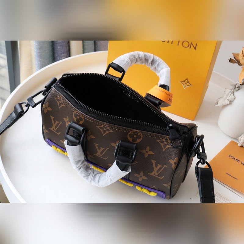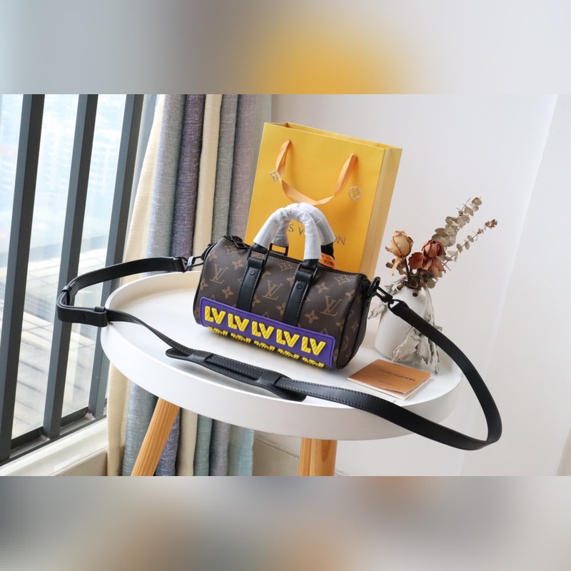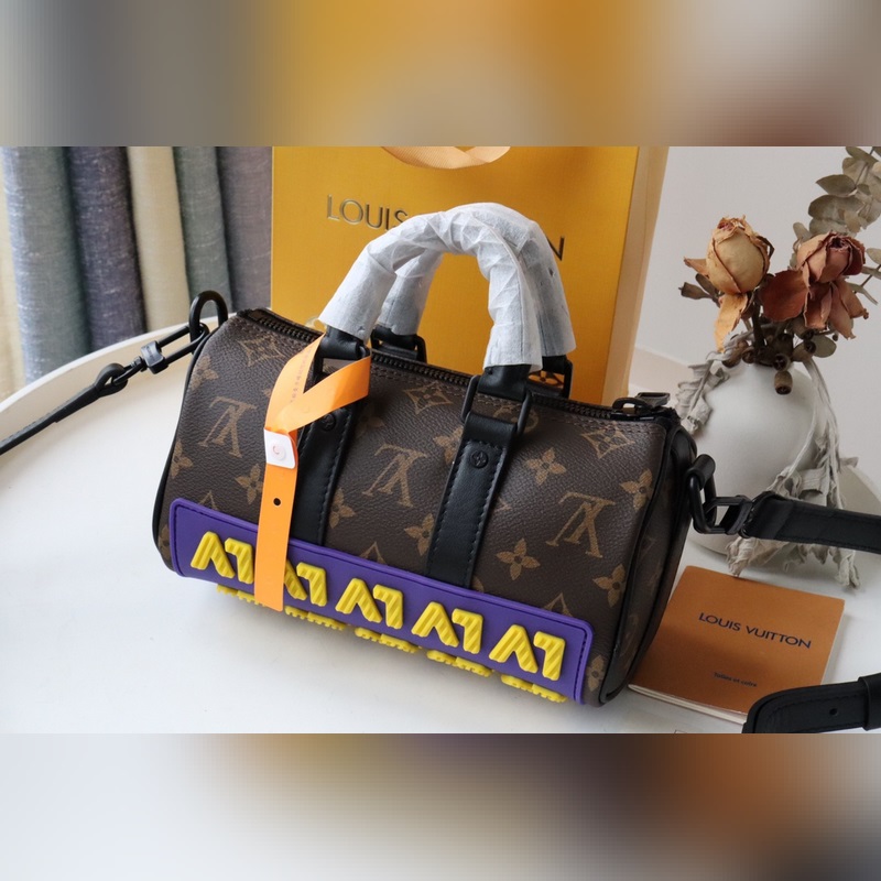 Huippuluokan vanha kukkakangas on sovitettu yhteen ensimmäisen kerroksen lehmännahkaa kanssa ja kankaan alareunaan on järjestetty lateksi L-kirjainkuvio, joka pursuaa kirkkailla väreillä antaen samalla turvallisen suojan ja tulkitsee mielenkiintoisesti “Lujia syksyn 2021” -sarjan teemaa. Kaksoiskahvat ja säädettävät olkahihnat mukavaan kantamiseen Koko 21*19