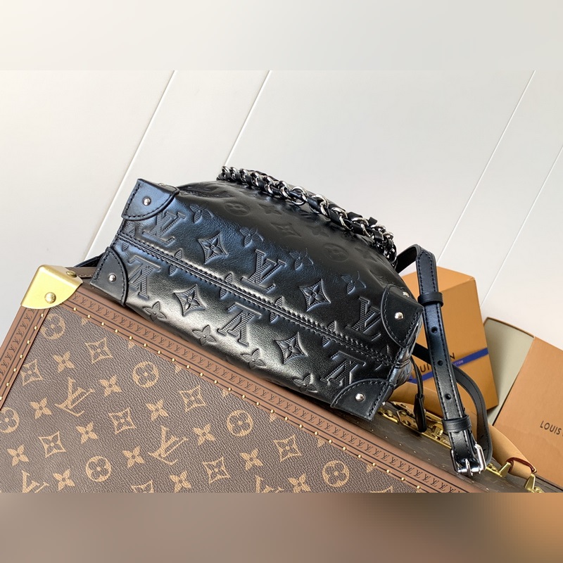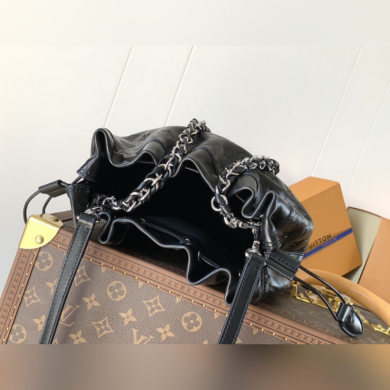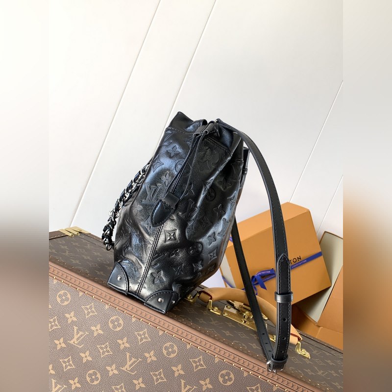 Varhaisen kevään 2025 Cruise -sarja tulkitsee klassisen Noé-käsilaukun ja lisää uuden jäsenen Trunk-perheeseen. Siro lampaannahka, jossa on kohokuvioitu Monogrammi-kuvio, nahkaiset kulmat ja kiristysnauhakiinnitys jatkavat ikonisia yksityiskohtia, irrotettava olkahihna ja punottu ketju käsikäyttöisiä tai poikkivartalovaihtoehtoja varten.
