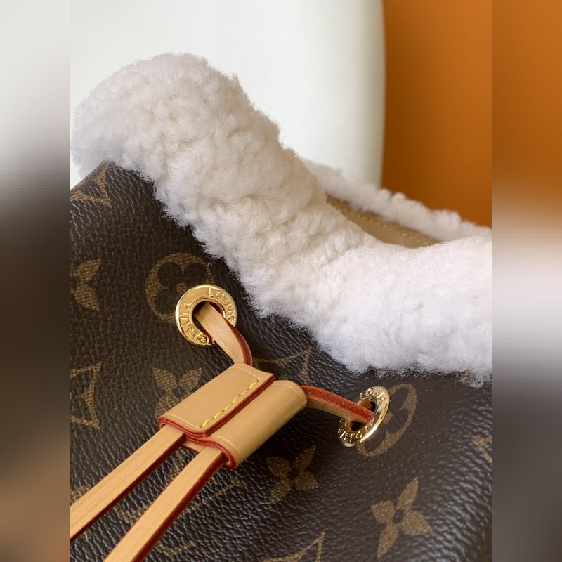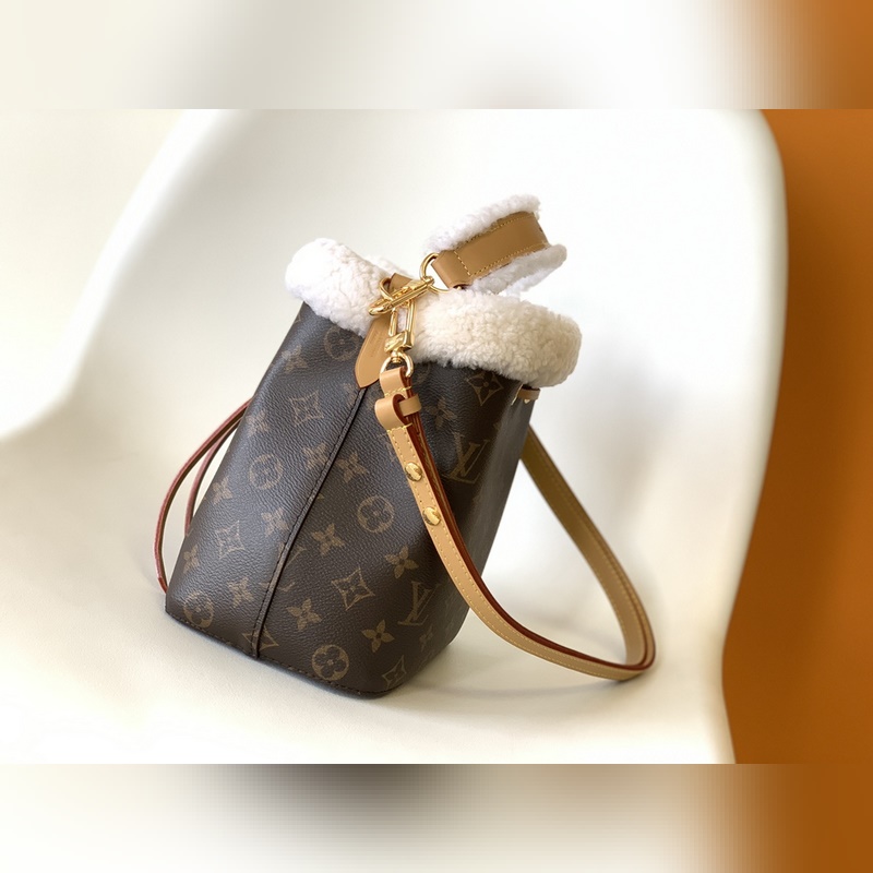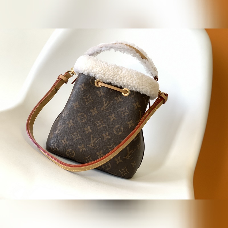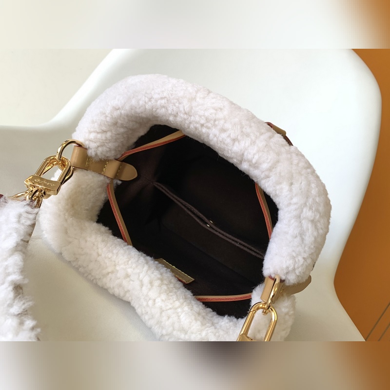 M46319 NéoNoé Bucket Bag on syystalvi 2023 -kokoelman NEONOE BB -sarjaan Damier Azur -pinnoitettu kangas, jossa on kermanpunaisia ja beigejä nahkareunuksia. Kudottu kahva tuo ylimääräisen ripauksen raikasta naisellisuutta talokuvakkeeseen, joka täydentää mitä tahansa lämpimän sään vaatekaappia. Yksi kahva ja säädettävä olkahihna ovat molemmat irrotettavissa useiden muotoiluvaihtoehtojen vuoksi. Mitat: 20 x 20 x 13 cm