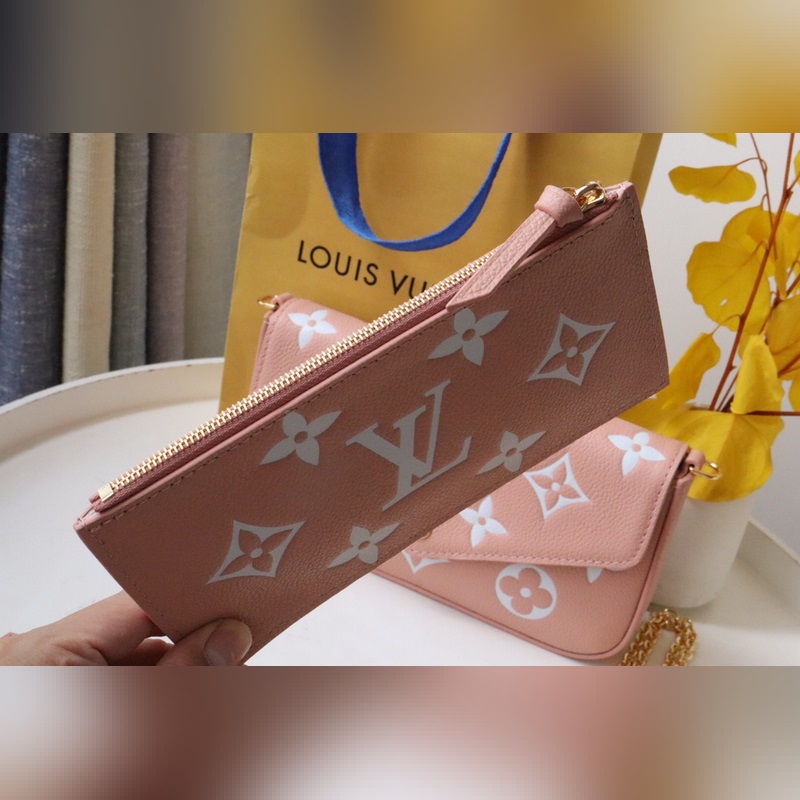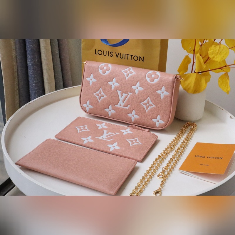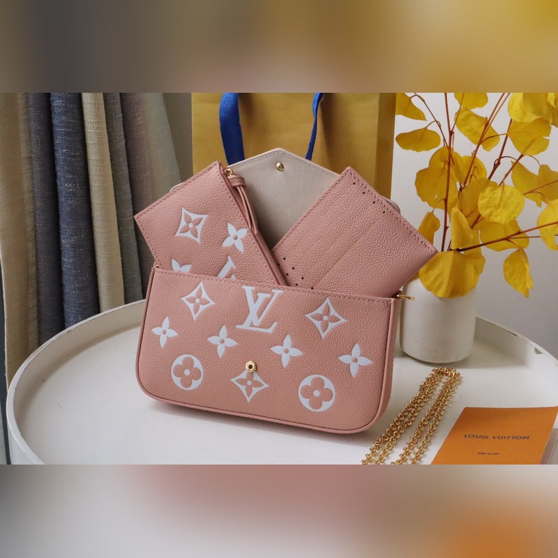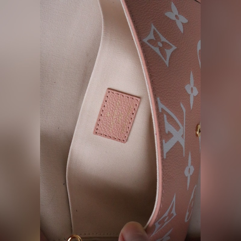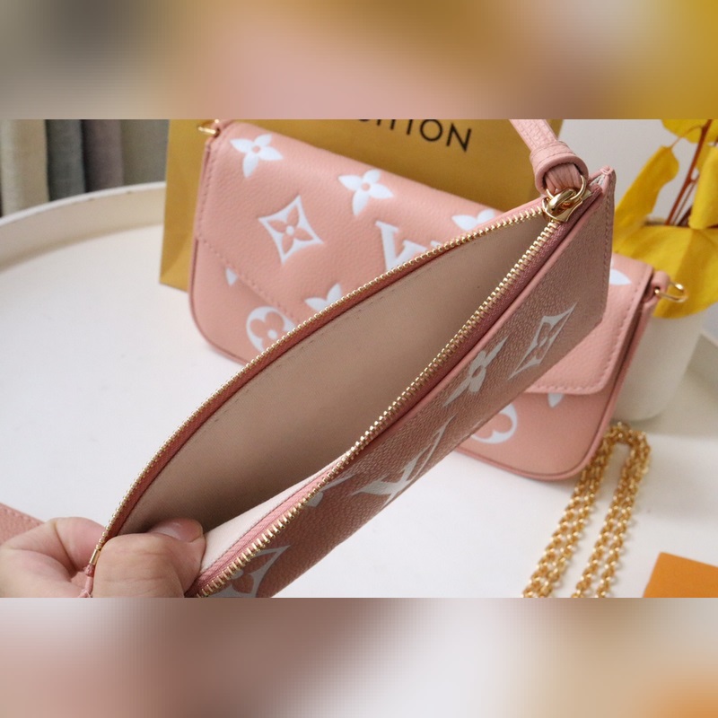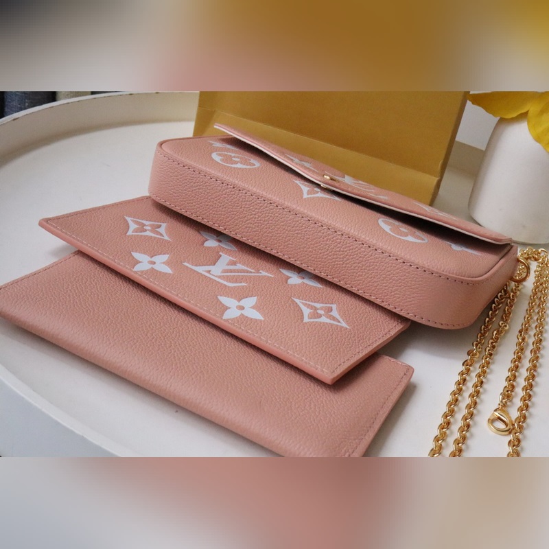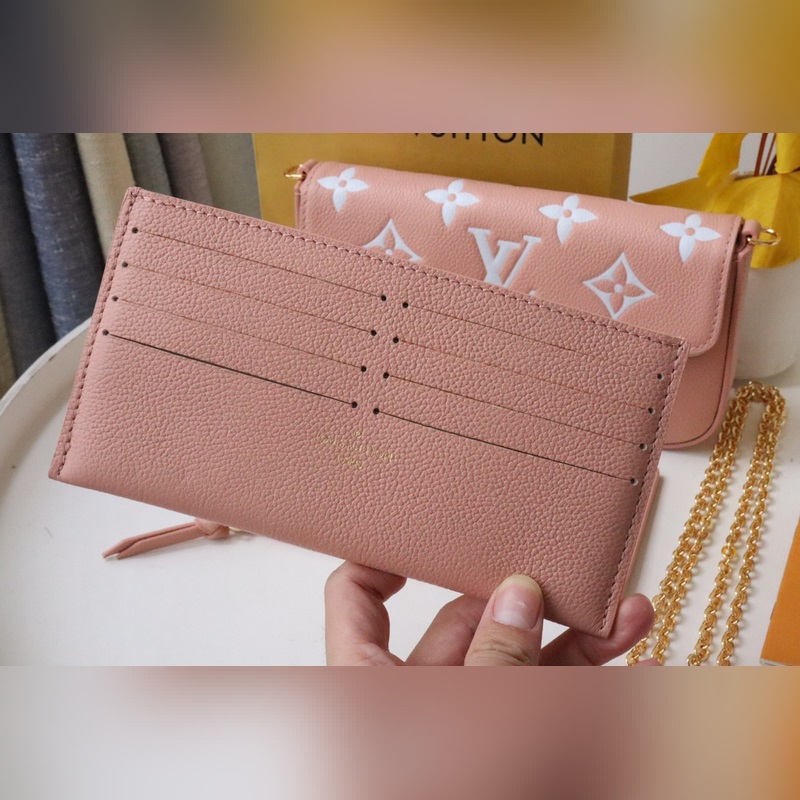 Tämä Pochette Félicie ketjulaukku on valmistettu pehmeästä Monogram Empreinte -nahasta, jossa on klassinen kohokuvioinen Monogram-kuvio, ja kaksivärinen muotoilu vapauttaa elegantin viehätyksen
