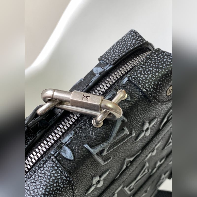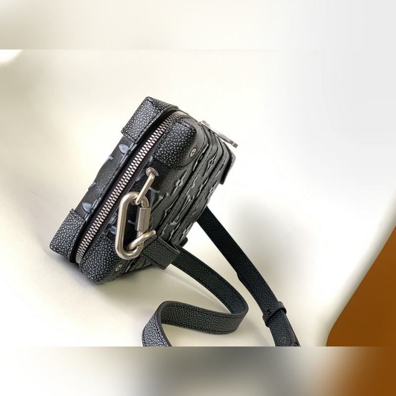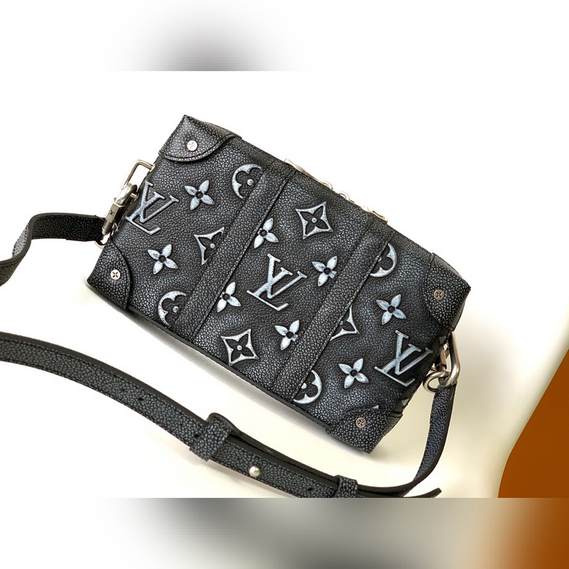 M81776 Tämä Mini Soft Trunk -laukku käyttää lehmännahkaa jäljittelemään denim-tekstuuria ja käyttää kohokuviointi- ja painatustekniikoita antaakseen Monogrammi-kuviolle kirjava ja haalistuneen vaikutelman. Ketjussa ja vahvistetuissa kulmissa on metallinen kiilto, ja kompakti kokoonpano vastaa päivittäisiin tarpeisiin. Yksityiskohtaiset ominaisuudet 22,5-14-5 cm