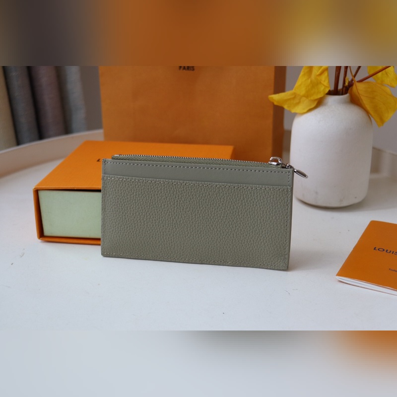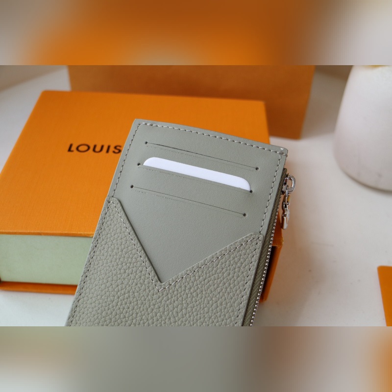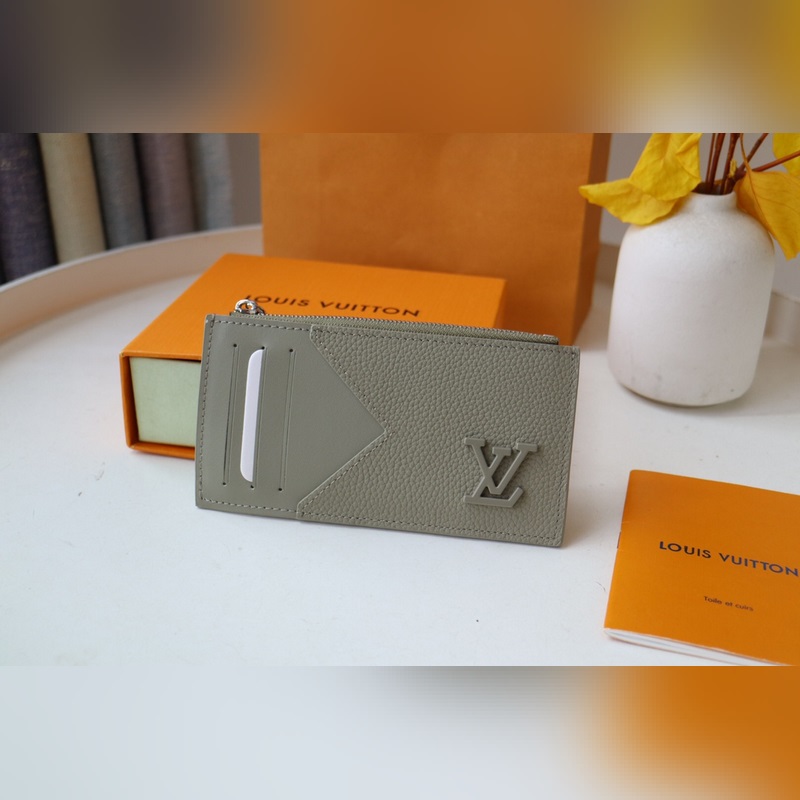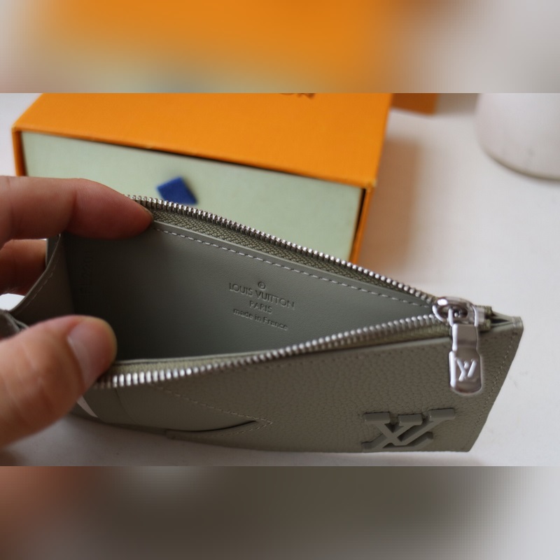 “Kolikonpidike” kauniista lehmännahasta, jossa on rakeita (shibo). “LV AEROGRAM” -sarjalla varustetut mattaiset LV-nimikirjaimet on koristeltu samalla värillä. Neljän korttipaikan ja vetoketjullisen kolikkolokeron lisäksi löytyy myös lokero seteleille ja kuiteille.