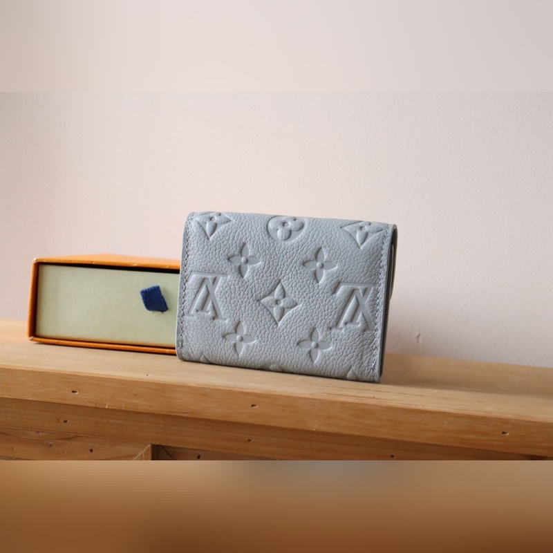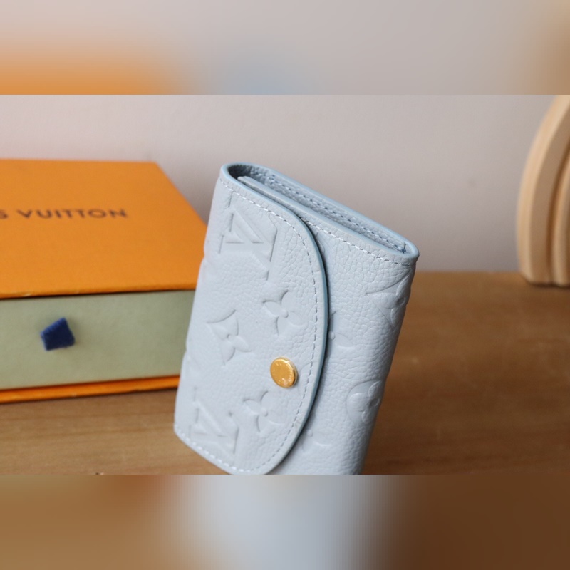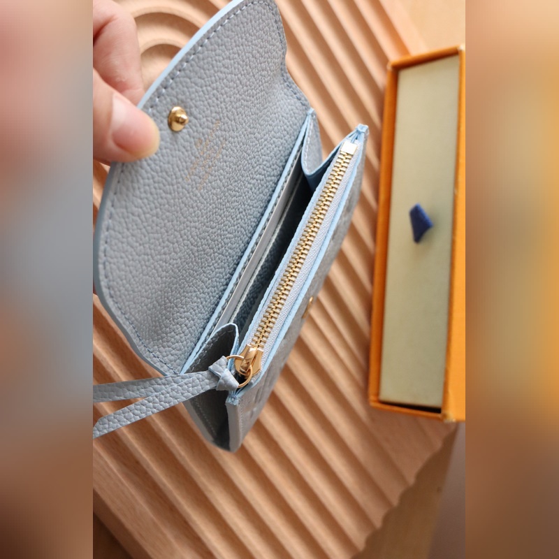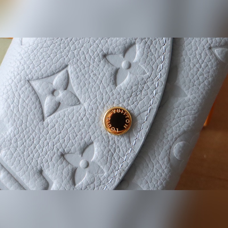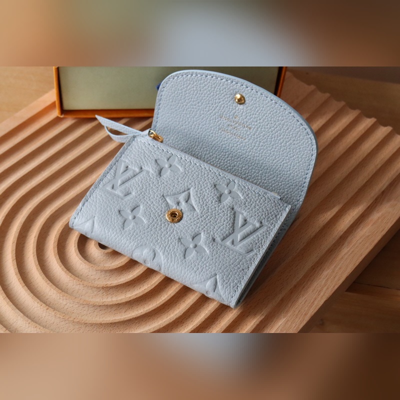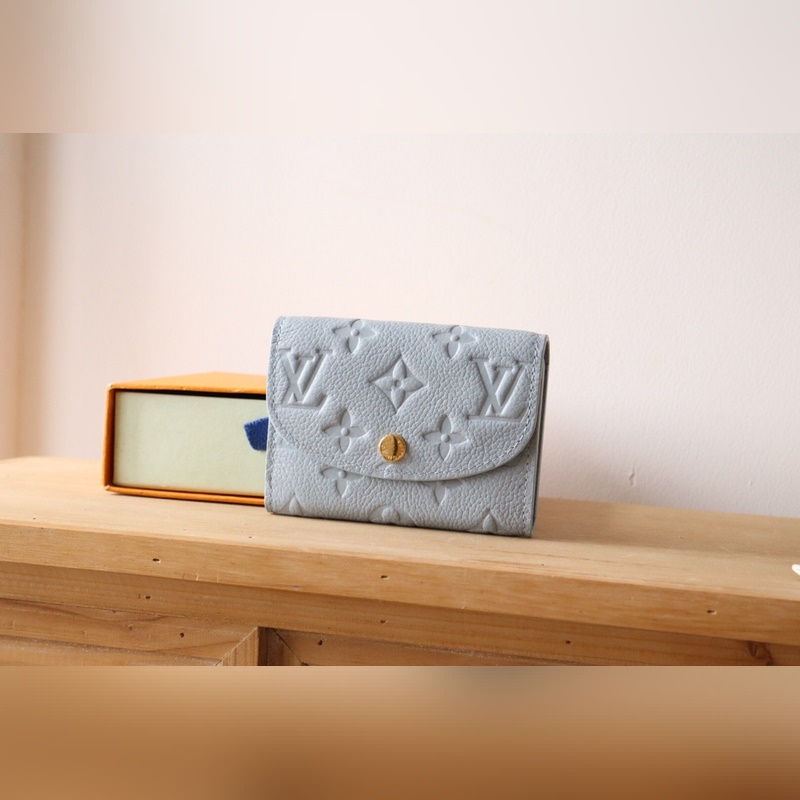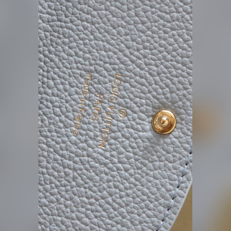 Pehmeä Monogrammi Unplant nahka viimeistelty sinisellä korostaen naisellista “Portomone Rosari” -mallia. Pyöristetyssä läpässä on kultainen nappi, jossa on “Louis Vuitton” -allekirjoitus, ja se on pieni lompakko. Sisäpuolella on litteä tasku, vetoketjullinen kolikkotasku ja 2 korttipaikkaa.