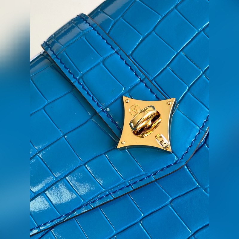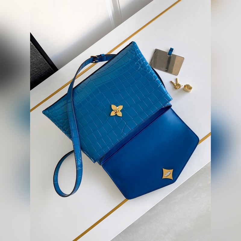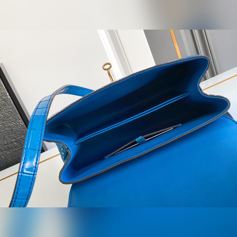 Alkuperäinen materiaali M84714 sininen (dynaaminen siruversio) nahka on italialaista A-luokan nahkaa, joka on laadultaan, laitteistoltaan, kankaalta, käsityöltä, öljyreunalta ja A-luokan tuotteelta. Koko: 27x18x9cm