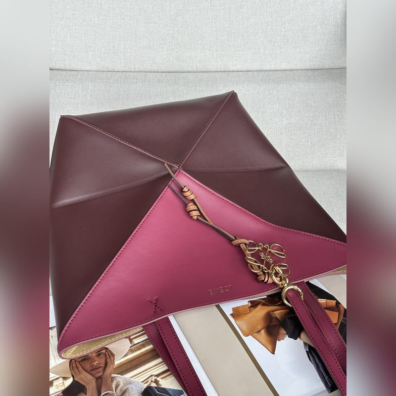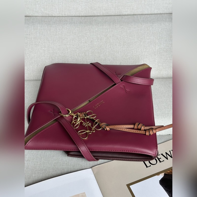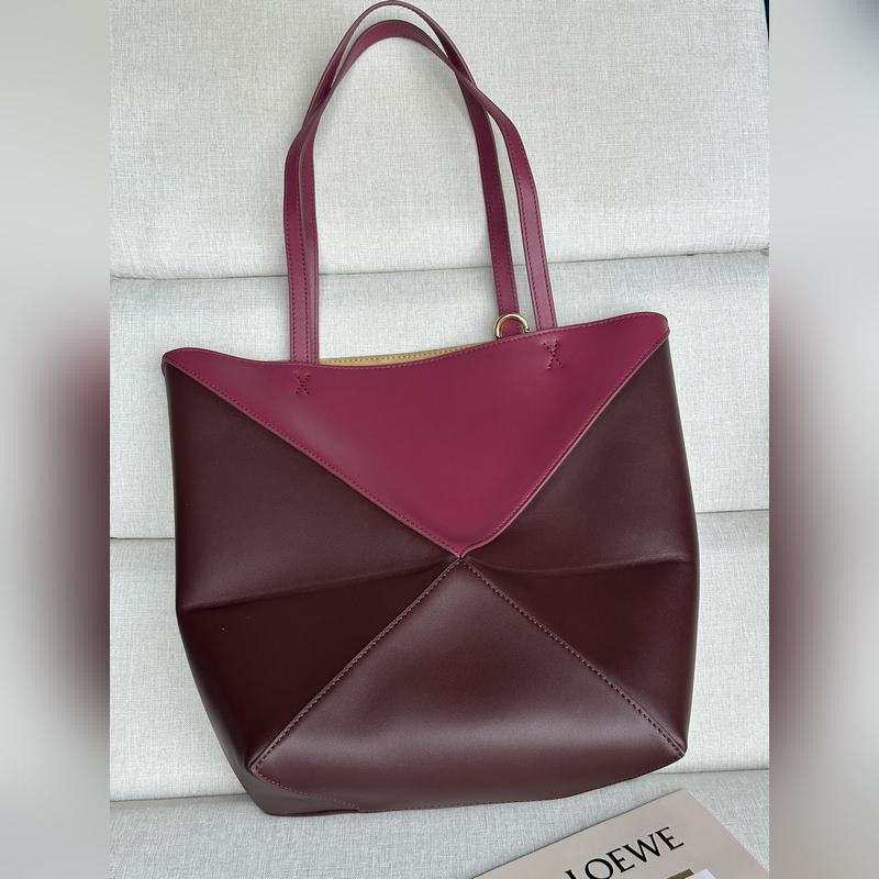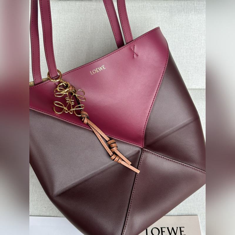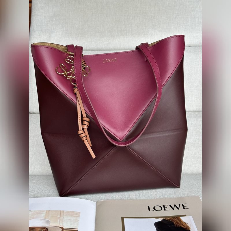 Puzzle Fold on saanut inspiraationsa talon ikonisten käsilaukkujen geometrisista linjoista, ja se on tulkittu uudelleen geometrisilla ja arkkitehtonisilla paneeleilla, joten se on täysin taitettava matkakumppani. House on käyttänyt luovaa ajattelua luodakseen pehmeän ja kevyen laukun, jossa on huomaamaton LOEWE-logo.