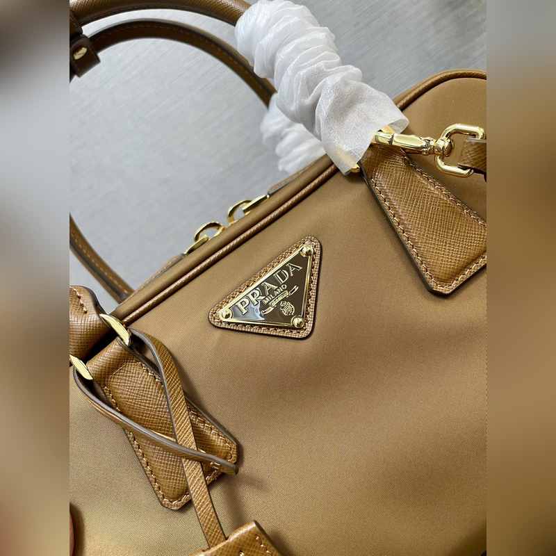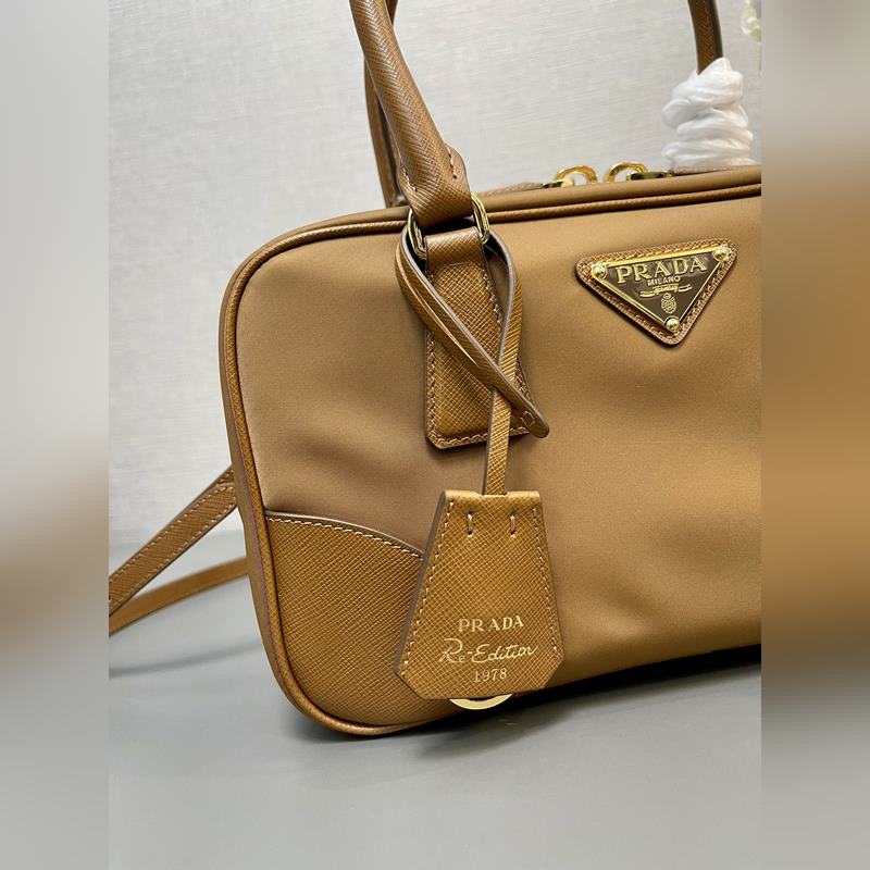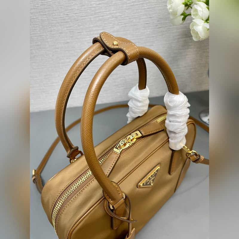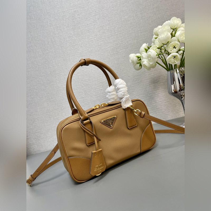 (Pieni koko 25cm olkahihnalla) Uusi vintage-laukku 1BB121 pieni koko Tämä kaksikahvainen käsilaukku on valmistettu kierrätetystä nailonista, ja siinä on ainutlaatuisia tyylielementtejä ja hienoja Saffiano-nahkayksityiskohtia, jotka kumoavat täysin ihmisten perinteisen käsityksen luksustuotteista. Se lisää ainutlaatuista viehätystä käytännöllisten muotoilukoristeiden ja hienojen yksityiskohtien väliin. Siinä on suuri kapasiteetti, se on käytännöllinen ja tunnelmallinen ja ajaton hitti. Koko: Pituus 25 korkeus x 14,5 x pohja 7,5 cm