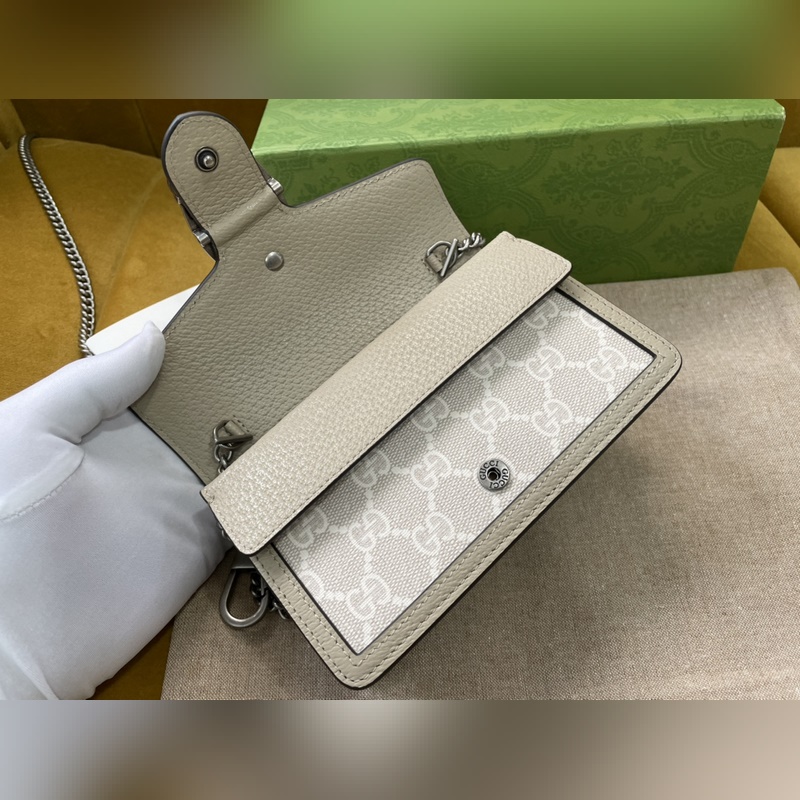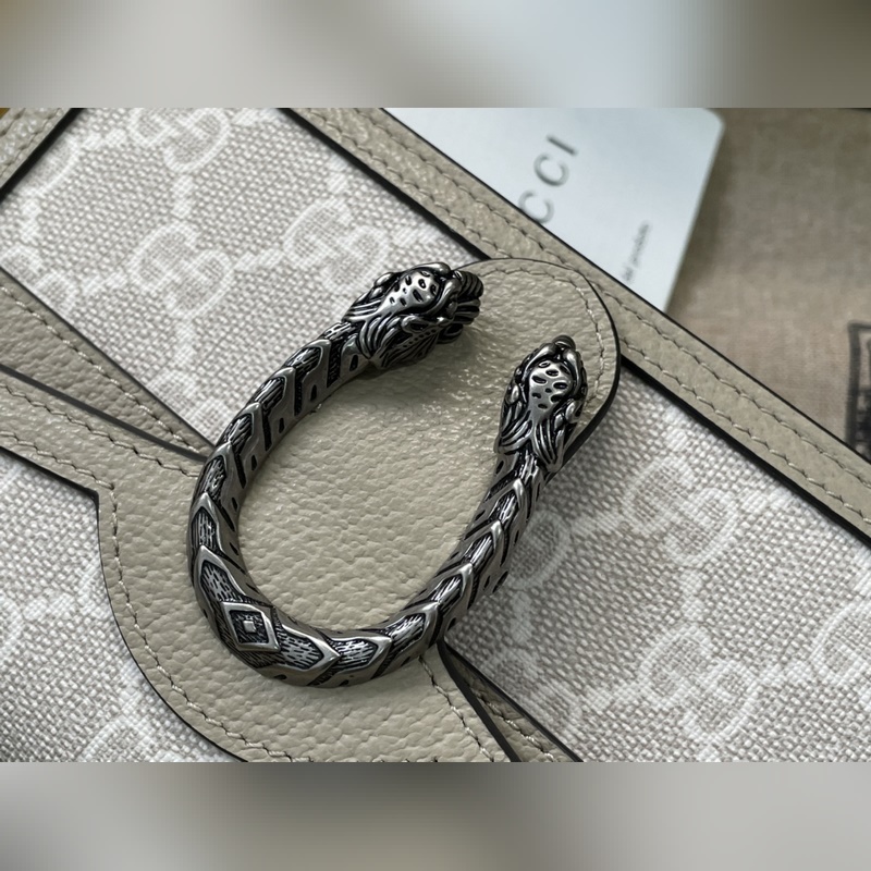 Malli nro 476432 Mini Dionysus laukku Valmistettu alkuperäisestä italialaisesta kaurapuurosta, PVC Retro hopea metallitarvikkeet Tiger pää soljen koristelu Litai puolikäsin ommeltu aito laatu liukuva ketju laukku hihnan koko: 16,5*10*4,5cm Alkuperäisessä pakkauksessa