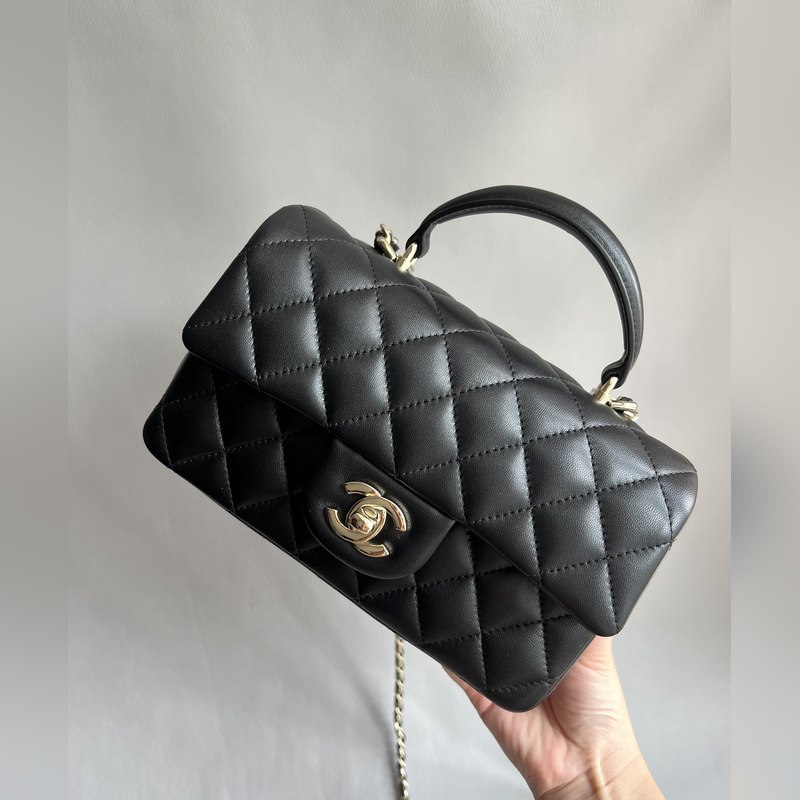 Be the first to review “Mini CF musta lampaannahareplica laukku vaalean kultaisella laitteistolla, alkuperäinen laatu”