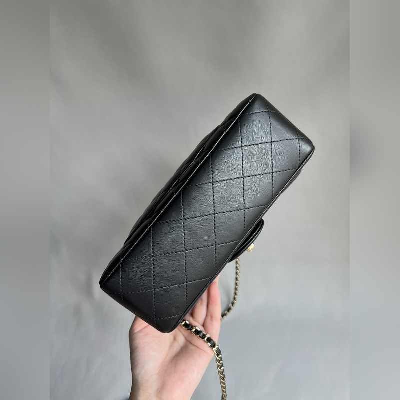 Mini CF musta lampaannahareplica laukku vaalean kultaisella laitteistolla, alkuperäinen laatu