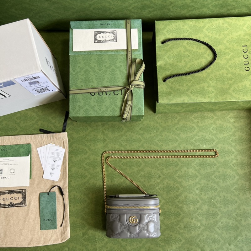 《Täydellä alkuperäisellä vihreällä pakkauksella》 Minikäsilaukku, tikattu nahka tulkitsee brändin ikonista materiaalia pehmeällä koostumuksella. Kuvioitu geometrinen kuvio tulkitsee elävästi erilaisia pieniä nahkatarvikkeita, mukaan lukien tämä musta minikäsilaukku. Edessä oleva kaksois-G-laitteisto lisää brändin logon koko suunnitteluun. Piilot, musta nahka, kullan sävyinen laitteisto tupla G, sisäpuoli: 1 avotasku ja koukku, kahva (1,5 cm korkea) olkahihnan korkeus 50 cm, vetoketju.