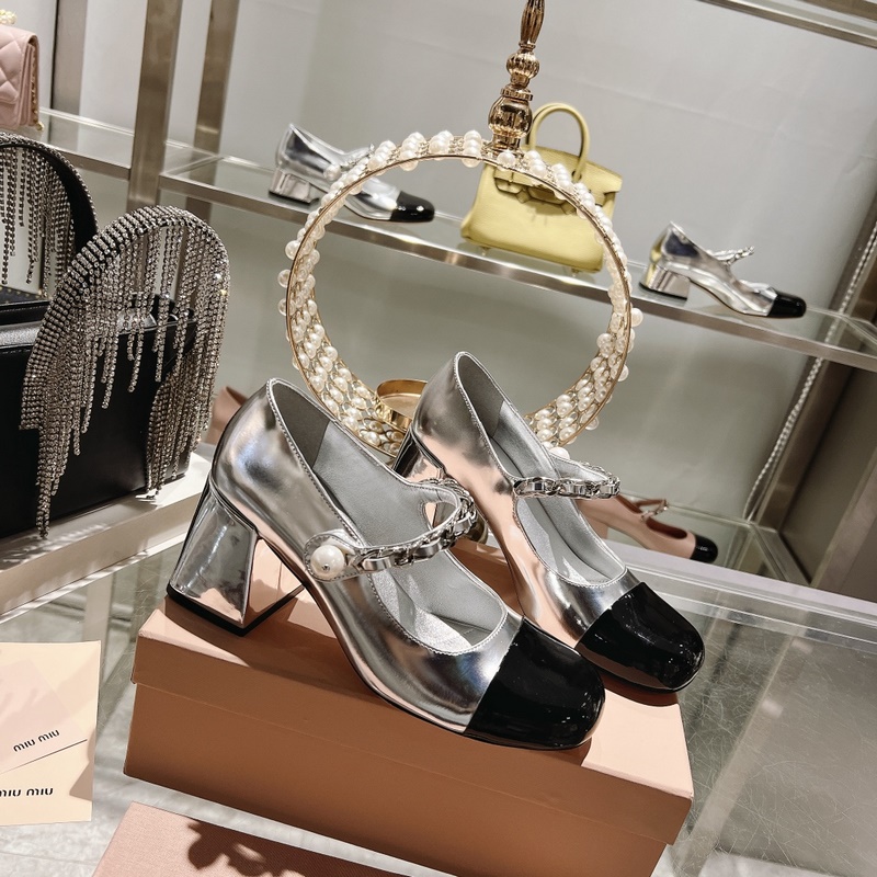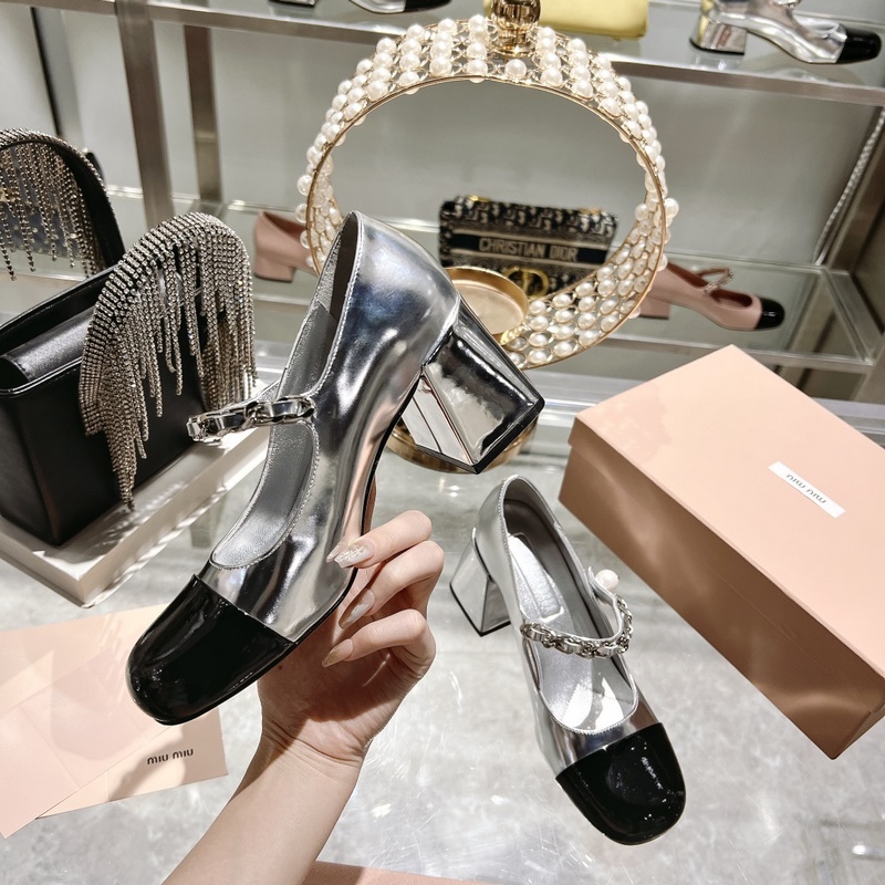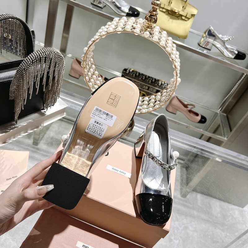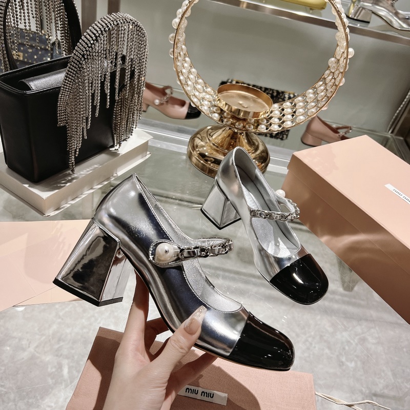 Sandaalit 300 counter upgrade miumiu 23 uuden tyylinen korkkareikä Mary Jane silkkinen ja herkkä rakenne täysi pisteet Kahden eri nahan liitos on mielenkiintoisempaa Elegantti makea ja viileä mix and match -tyyli Koron korkeus 4,5cm 7cm Girls Camp lempeä katto on kaunis