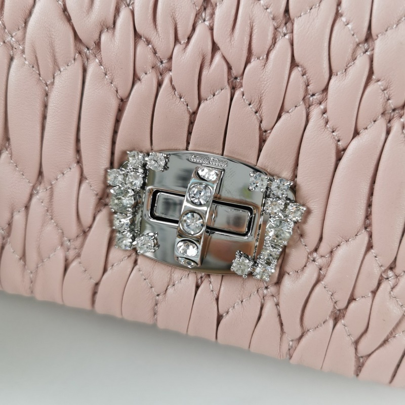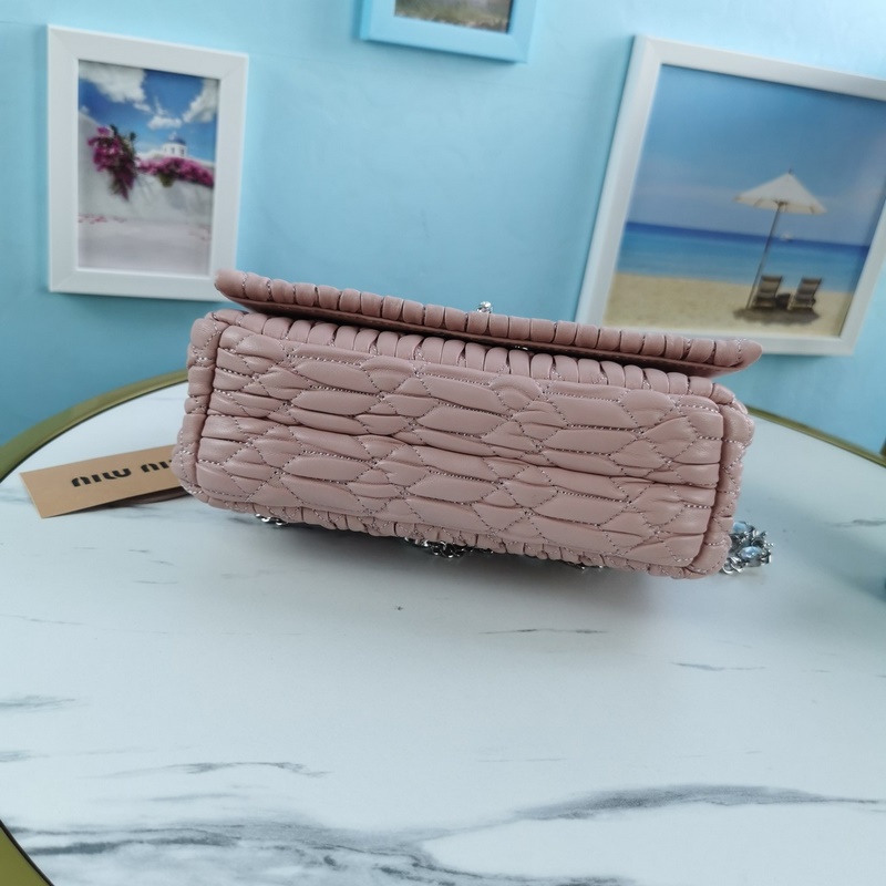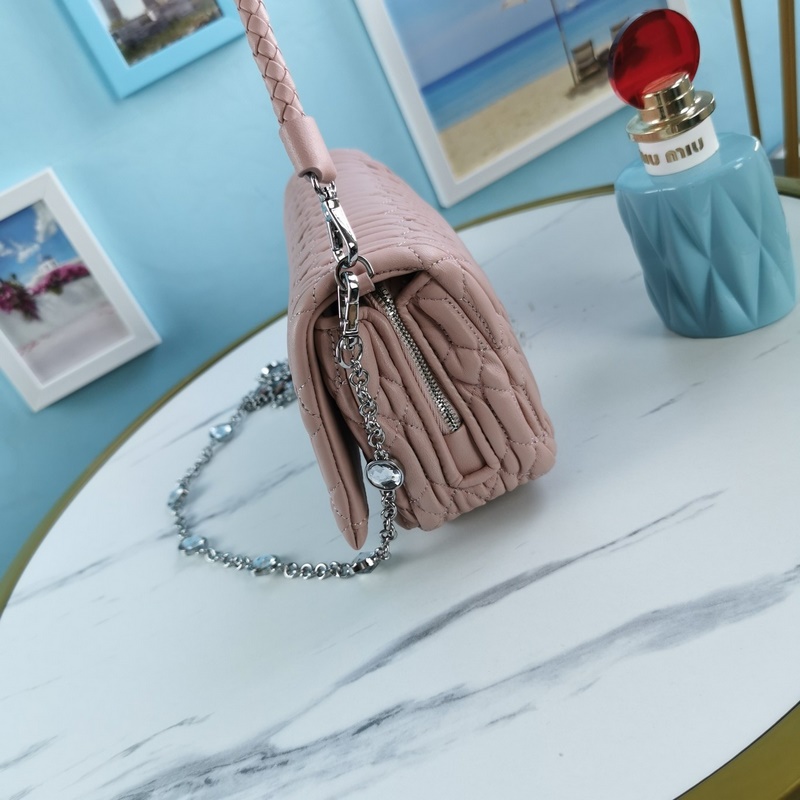 Miumiu Olkalaukku Vaaleanpunainen Malli nro: 5BH012 Uusi päivitetty versio, kristallijäljitelmäketjulaukku, klassinen jacquard-design