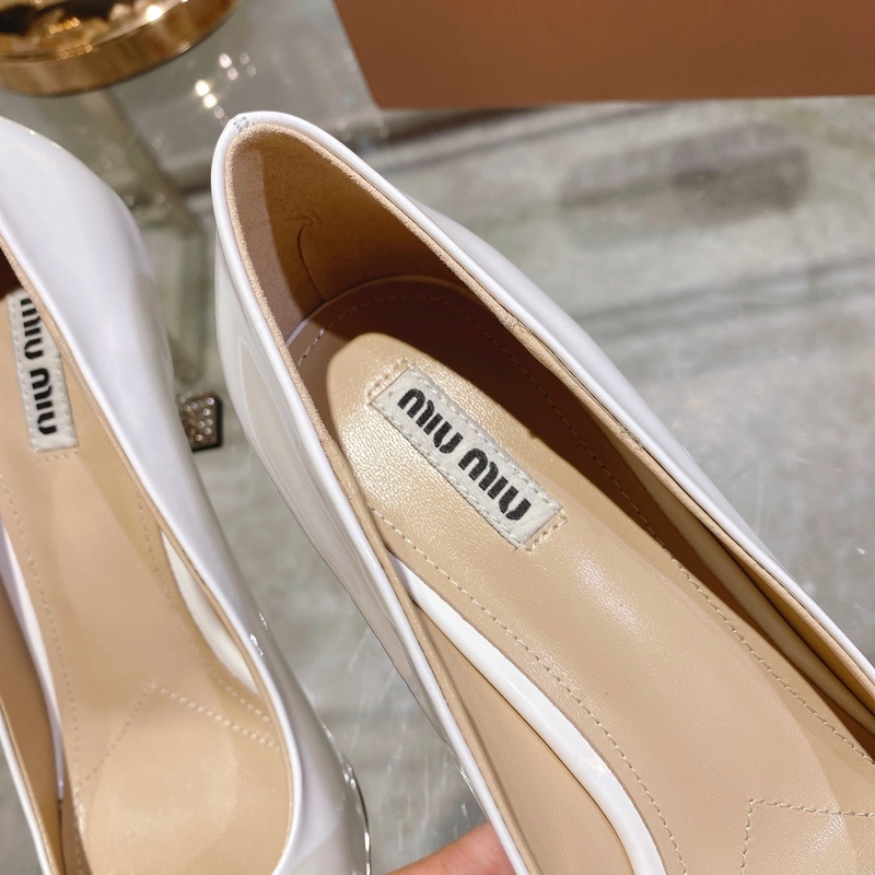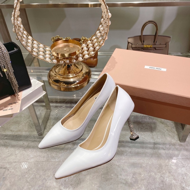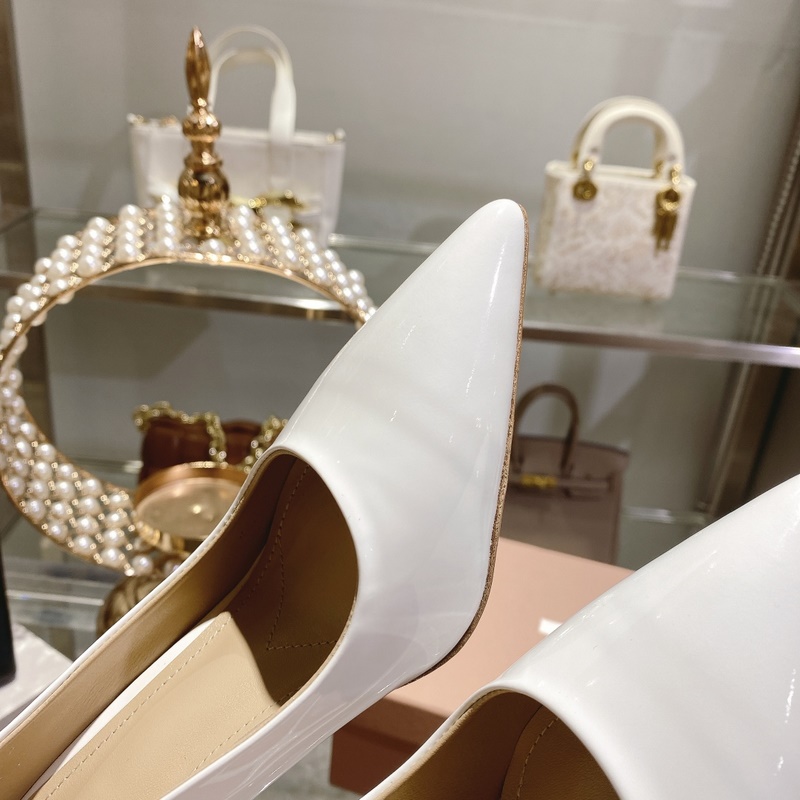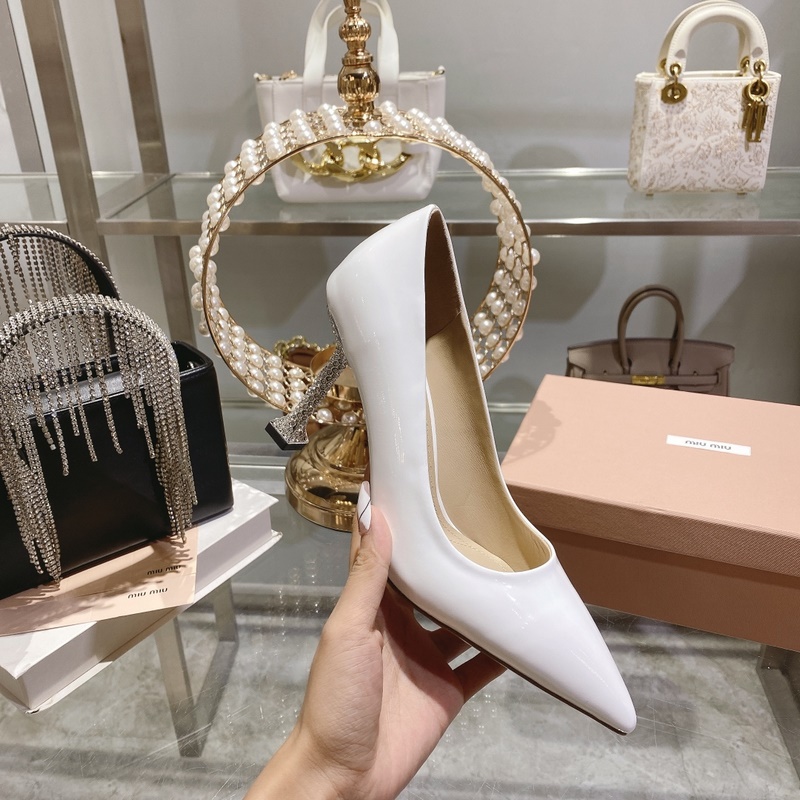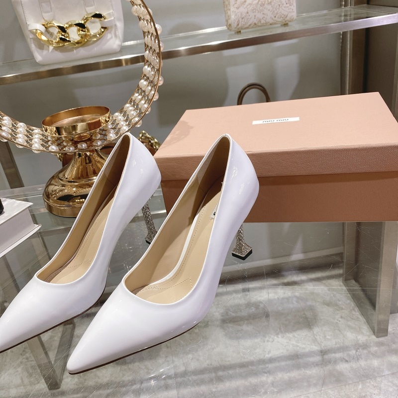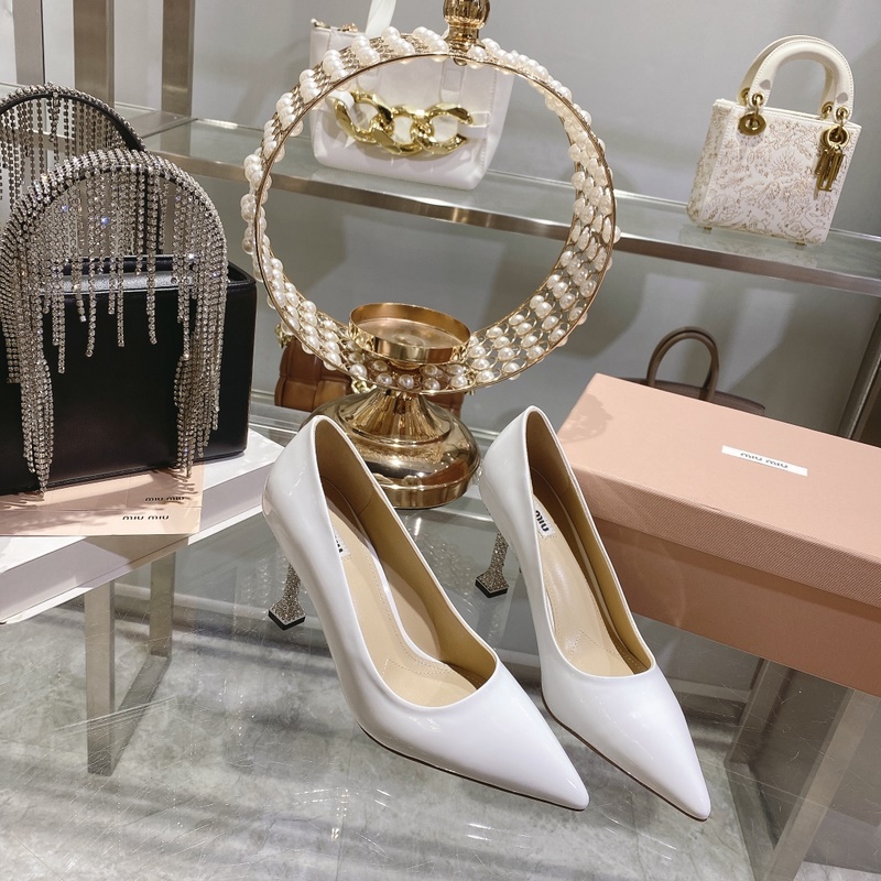 Miu Miu Spring Collection tyylikkäät kiiltonahkaiset korkokengät jalokivillä