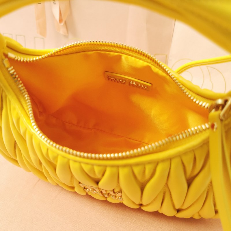 5BC125: MiuMiun uusi MiuWander-käsilaukku, valmistettu tuodusta karitsannahasta, klassisen brändin ikoninen Matelasse-kuviokirjonta, retrohimmeä laitteisto, pyöreät kaaret säilyttämään oikean leikkisyyden tunteen, kassin yleismuoto on jäykkä ja tyylikäs, täynnä persoonallisuutta, valkoinen, makea tai suolainen, keltainen, suuri kapasiteetti, yksi, musta, herneenvaalea, melkein kaikki tärkeimmät muotibloggaajat kirsikanpunainen, kirkkaan punainen, koko: 23X13X7, alkuperäispakkauksessa
