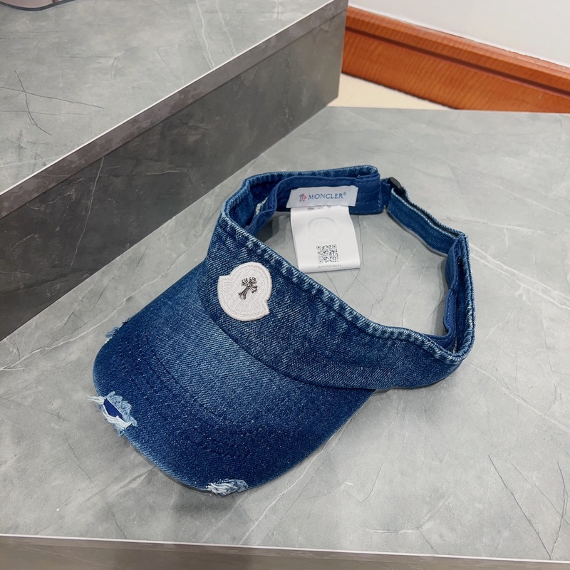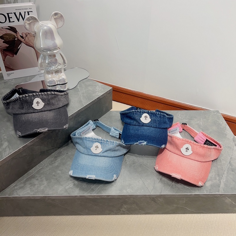 Moncler korkealaatuinen, denim pesty ja ahdistunut, yksinkertainen ontto hattu kesäksi, hengittävä ja mukava,