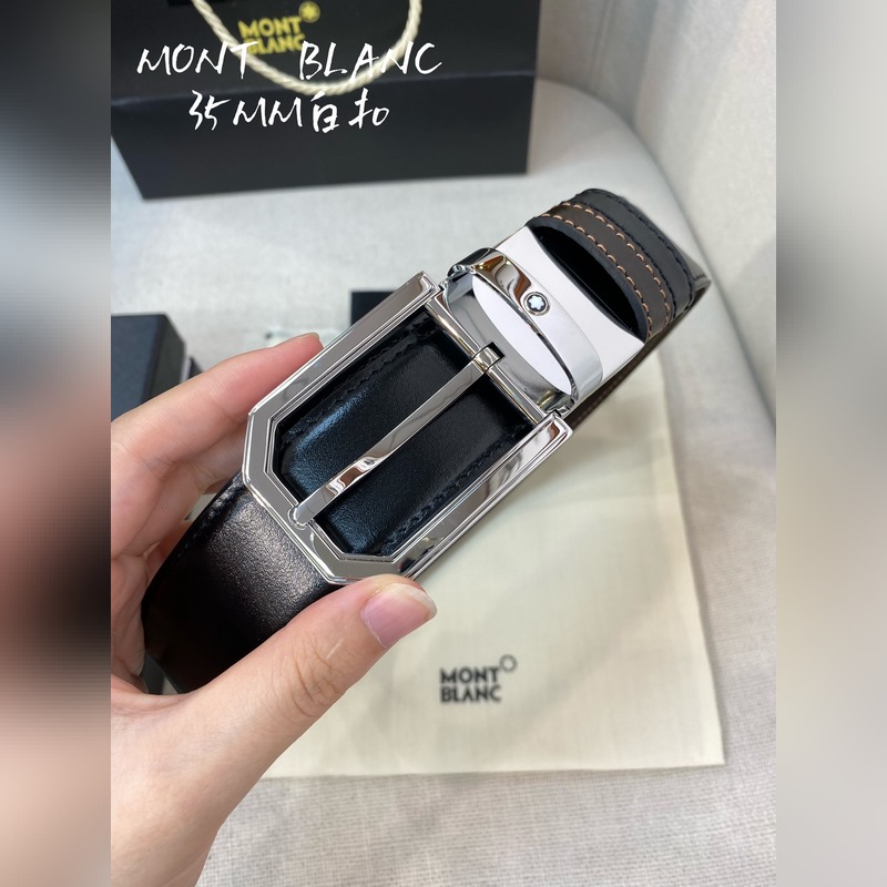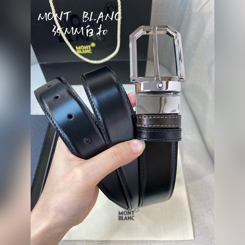 Montblanc Montblanc 3,5 cm leveä, valmistettu päällyskerroksesta lehmännahasta, hieno solki, vapaasti leikattu business casual -vyö