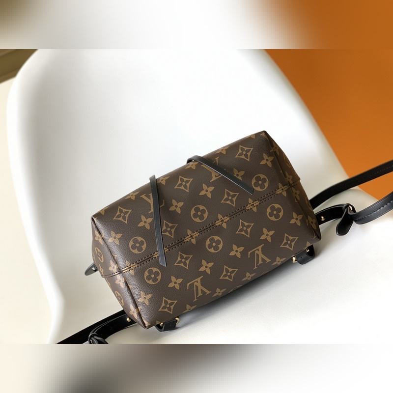 M45515 Musta M45501 Monogram Uusi Montsouris-pieni reppu on valmistettu Monogram kankaasta ja lehmännahasta, soljet ja nahkaiset kiristysnauhat merkkiarkistoista. Runsaasti sisätilaa ja vetoketjulliset ulkotaskut lisäävät toimivuutta, ja yläkahva sekä irrotettava ja säädettävä nahkainen olkahihna mahdollistavat monenlaiset kantotavat. Mitat: 27,5 x 33,0 x 14,0 cm