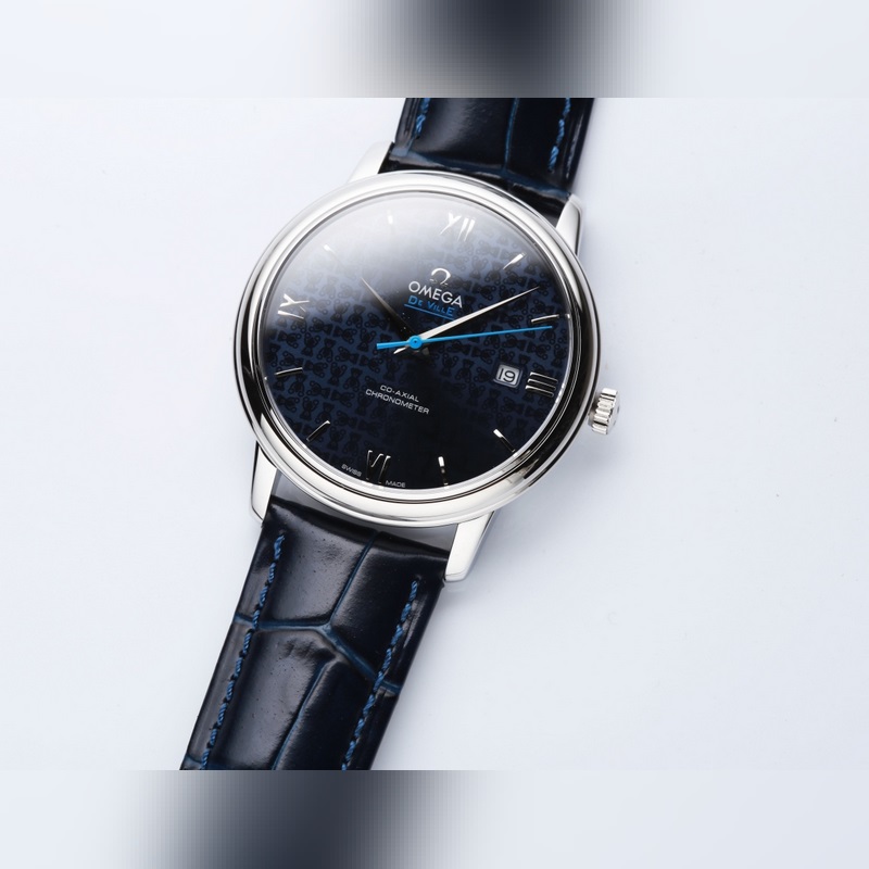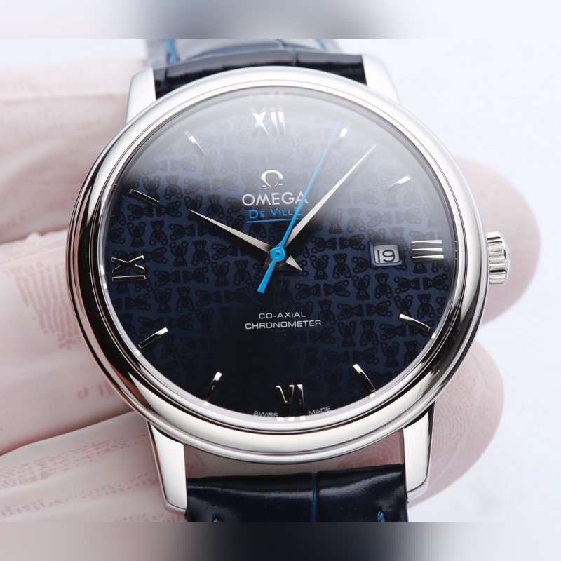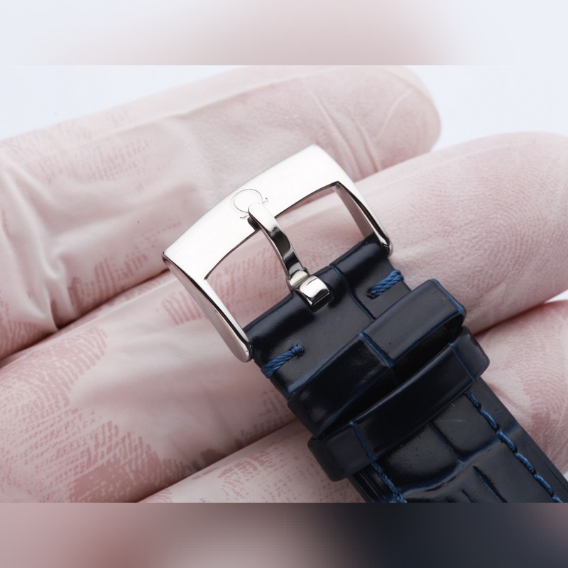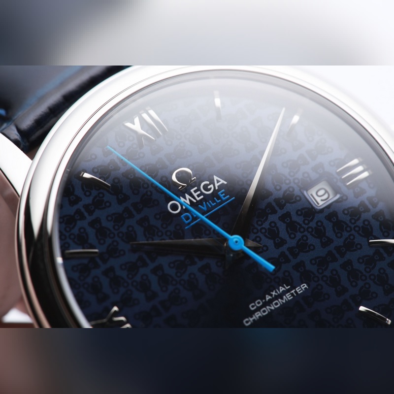 Omega-De Ville sarja, aito muotti. Orbis Bear on tulossa, kaaren muotoisella kulutusta kestävällä kaksipuolisella safiirilasisella kellopeilillä, ja sisäpuoli on heijastamaton (läpinäkyvä, teräväpiirto ja kulutusta kestävä). Teksti on sopusoinnussa aidon sinisen lakan posliinipintaprosessin kanssa, kaaren muotoinen tuntimerkkipinta ja takakansi on koristeltu hienoilla Omega Teddy Bear -kuvioilla, ja teräshihnan takaosa on myös synkronoitu alkuperäisen kanssa lasertuotteen eränumerolla. Kesti 9 kuukautta korjata ja päivittää monta kertaa 1:1-kuorityypin luomiseksi täydellisyyteen pyrkiväksi. 39,5 mm:n halkaisija käyttää alkuperäistä Citizen 8215 -liikettä, ja zero-repair -laatutyyli on yhdistetty italialaiseen lehmännahkaan, jotta ranne istuu mukavammin. Hihnan runkoon/soljeen on kaiverrettu “OMEGA” klassinen logo, joka on antelias ja tyylikäs. Kiinnitä huomiota yksityiskohtiin, kun kuvaat todellista asiaa