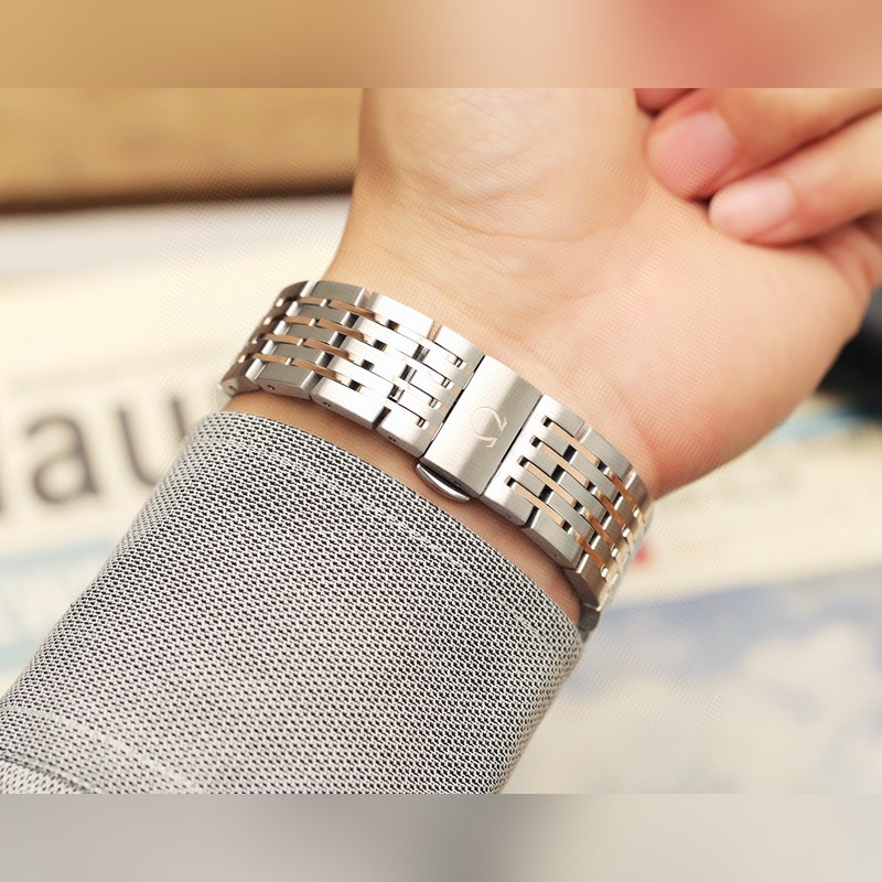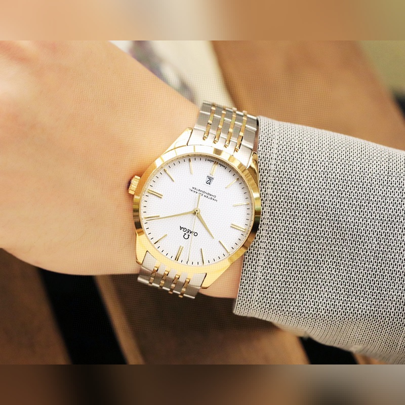 Omega de Ville -sarja. Alkuperäinen johdonmukainen kovera ja kupera ruudukkokuvio, käytetty/minuuttikäsin synkronoitu alkuperäinen älykäs kolmiulotteinen taivutus.