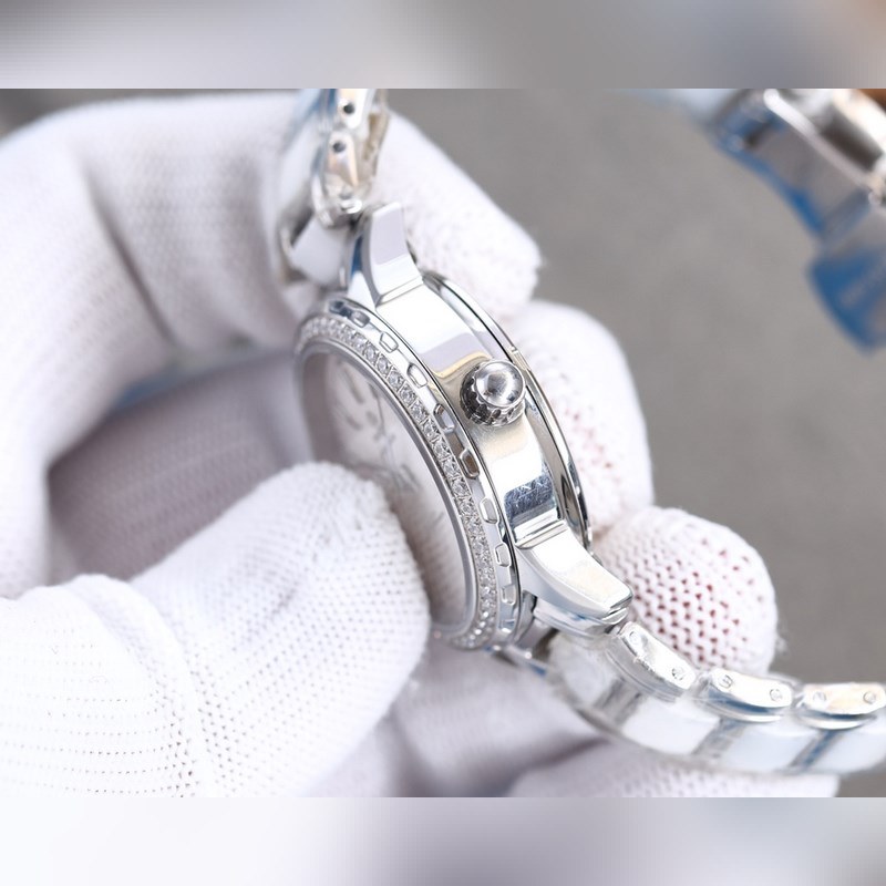 Uusi tuotesuositus Koko kotelo on valmistettu korkealaatuisesta ruostumattomasta teräksestä, upotettu Swarovskin kristallitimanteilla, ja tyhjiöpinnoitus ei haalistu. Varustettu alkuperäisellä tuodulla liikkeellä, italialainen tuontivasikannahka, erittäin vedenpitävä suorituskyky, voidaan käyttää suoraan uimiseen, halkaisija 33 mm.