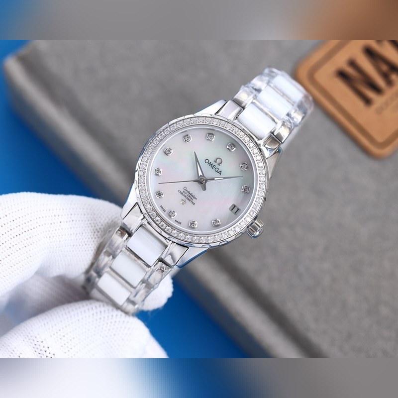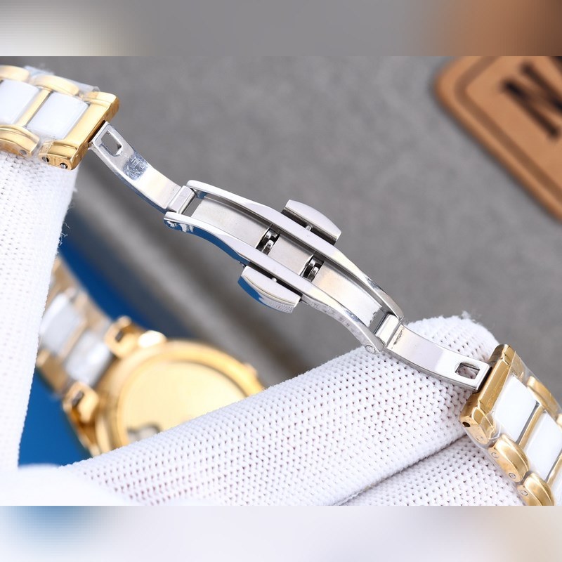 Uusi tuotesuositus Koko kotelo on valmistettu korkealaatuisesta ruostumattomasta teräksestä, upotettu Swarovskin kristallitimanteilla, ja tyhjiöpinnoitus ei haalistu. Varustettu alkuperäisellä tuodulla liikkeellä, italialainen tuontivasikannahka, erittäin vedenpitävä suorituskyky, voidaan käyttää suoraan uimiseen, halkaisija 33 mm.