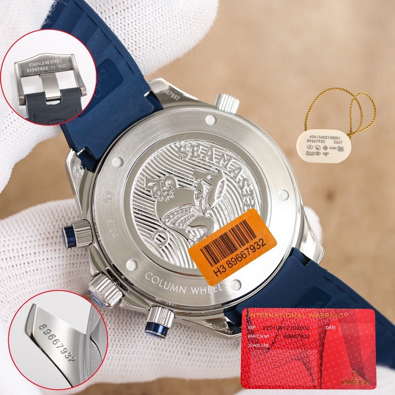 5: Se ottaa käyttöön vakaan kronografitoiminnon liikkeen luotettavalla laadulla. Sekuntiosoitin on kello 9, 30 minuutin kronografin kellotaulu klo 3 ja 12 tunnin kronografin kellotaulu kello 6.