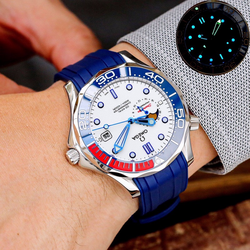 Omega-OMEGAn uusimmassa Seamaster-kellossa on erittäin valoisa ja 9-numeroinen todellinen kuun vaihe. Se käyttää tuotua täysin automaattista mekaanista liikettä, saavuttaen nollakorjauksen, yli 48 tunnin tehon varastoinnin ja jopa 50 metrin vedenpitävän syvyyden.