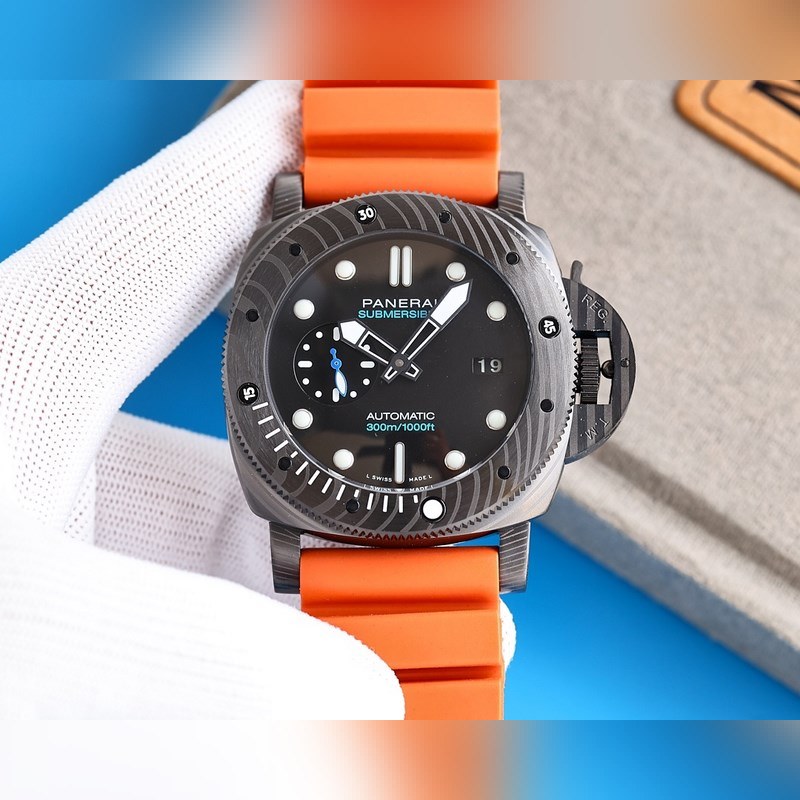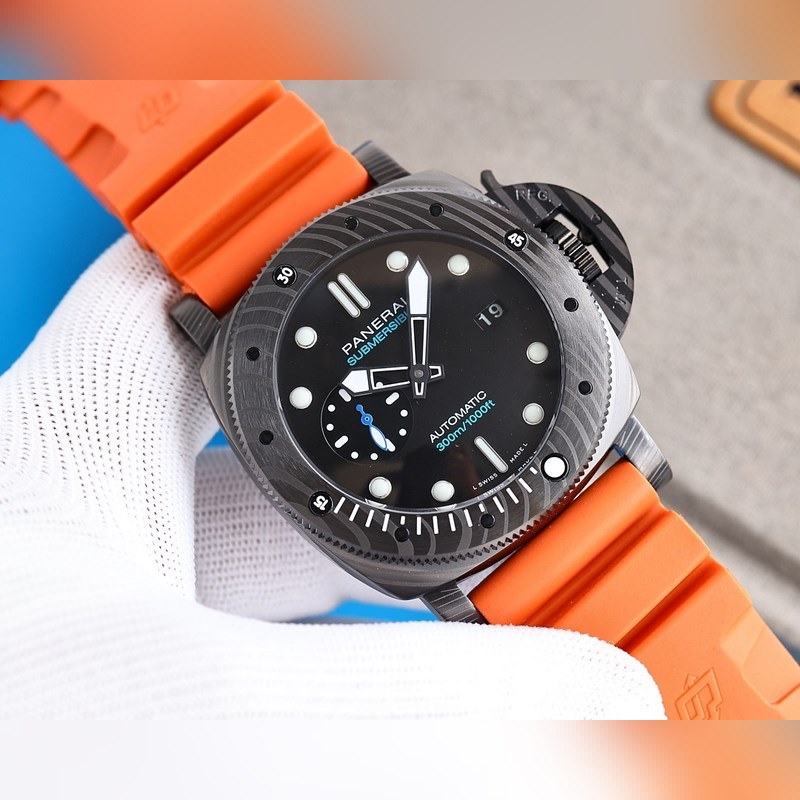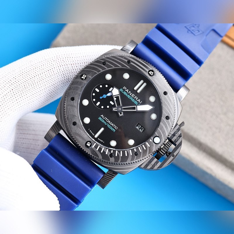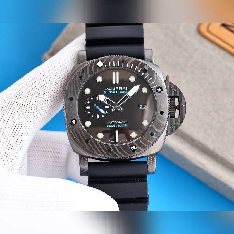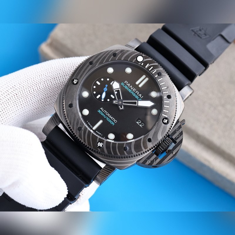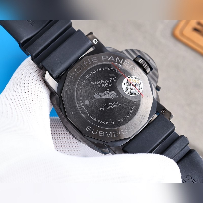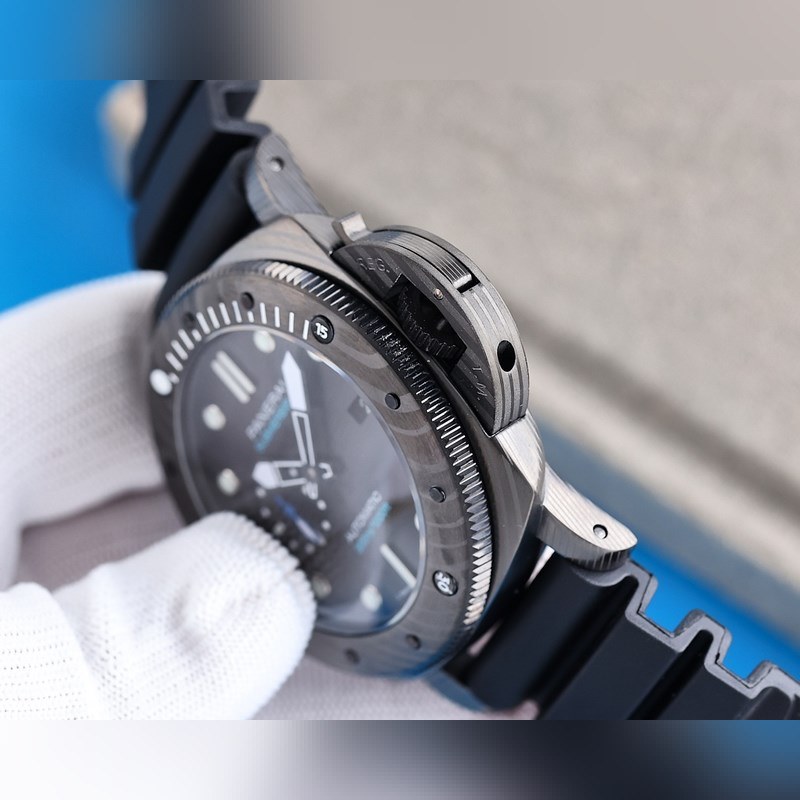Panerai on varustanut Italian laivaston kommandot kelloilla ja tarkkuusinstrumenteilla vuosikymmeniä. 47mm kotelo on valmistettu carbotech-hiilikuitukomposiittimateriaalista, joka sopii hyvin miehille, joilla on vahva vartalo. Super-LumiNova supervalaiseva pinnoite yksisuuntaisesti pyörivässä kehyksessä, tuntimerkit ja suuret ontot osoittimet varmistavat, että kello on edelleen selkeästi luettavissa pimeässä ympäristössä. Kello 9 on pieni toinen kellotaulu ja kello 3 päivämääränäyttö. Varustettu uusimmalla täysin automaattisella V7-tehtaan kehittämällä mekaanisella liikkeellä