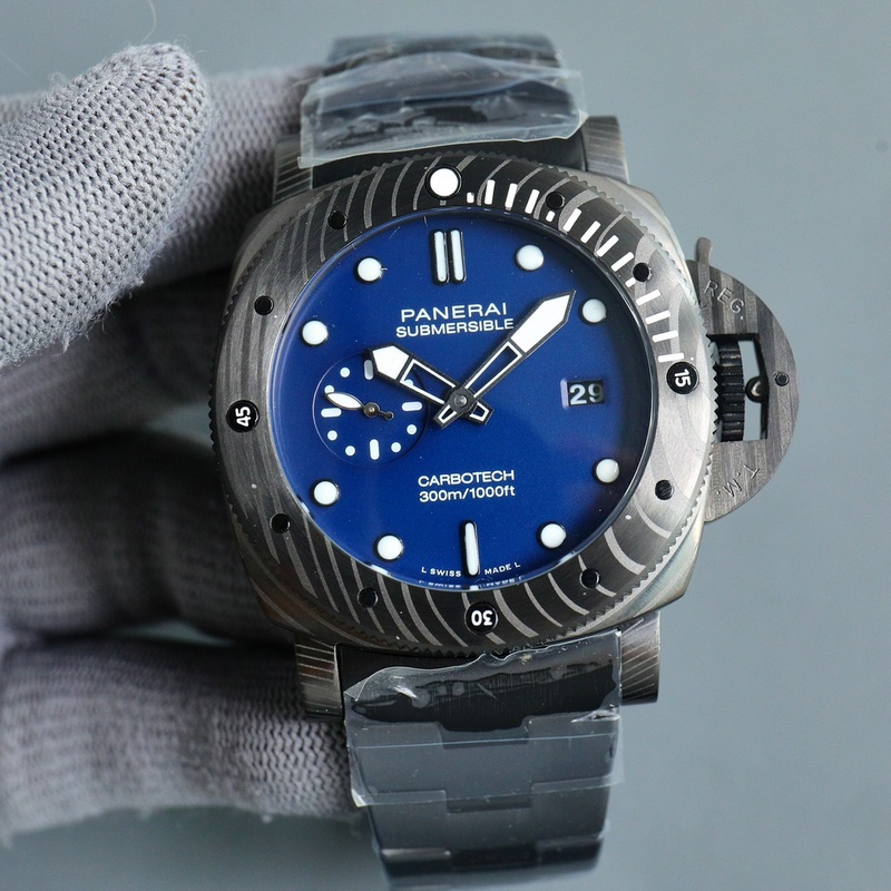 V7 Panerain uusi UPMERSIBLE BMG-TECH ─ 47mm Upotettava-sarjan räjähtävä ontto kello maahantuodulla 2555 automaattisella mekaanisella liikkeellä, joka on valmistettu Panerain uudesta BMG-TECH-materiaalista, erittäin lujalla ja naarmuuntumattomalla. Jokainen kello on ainutlaatuinen. Pyöreä asteikko ja ontot kädet ovat erittäin tunnistettavissa ja päällystetty Suer-LumiNova super luminous -pinnoitteella varmistaakseen, että aikatiedot voidaan lukea selkeästi pimeässä ympäristössä.