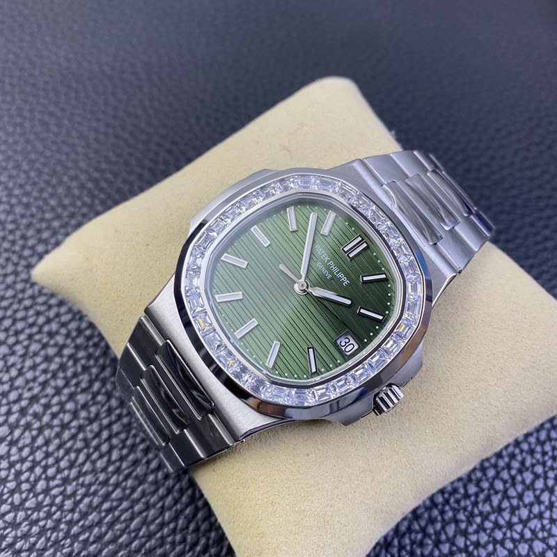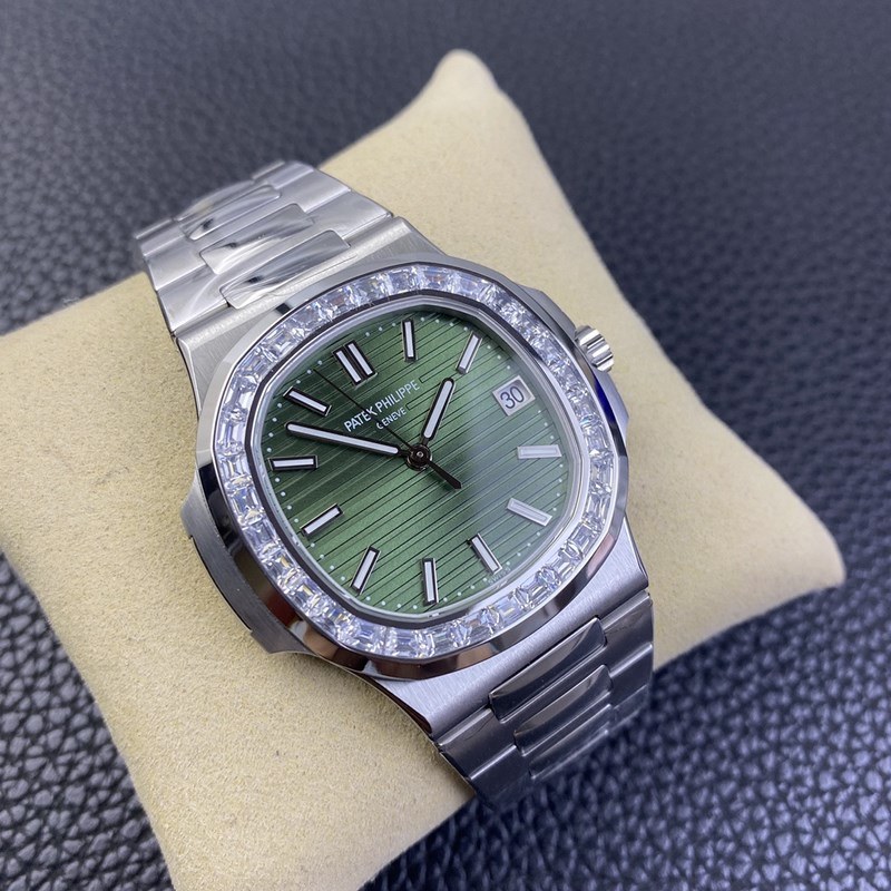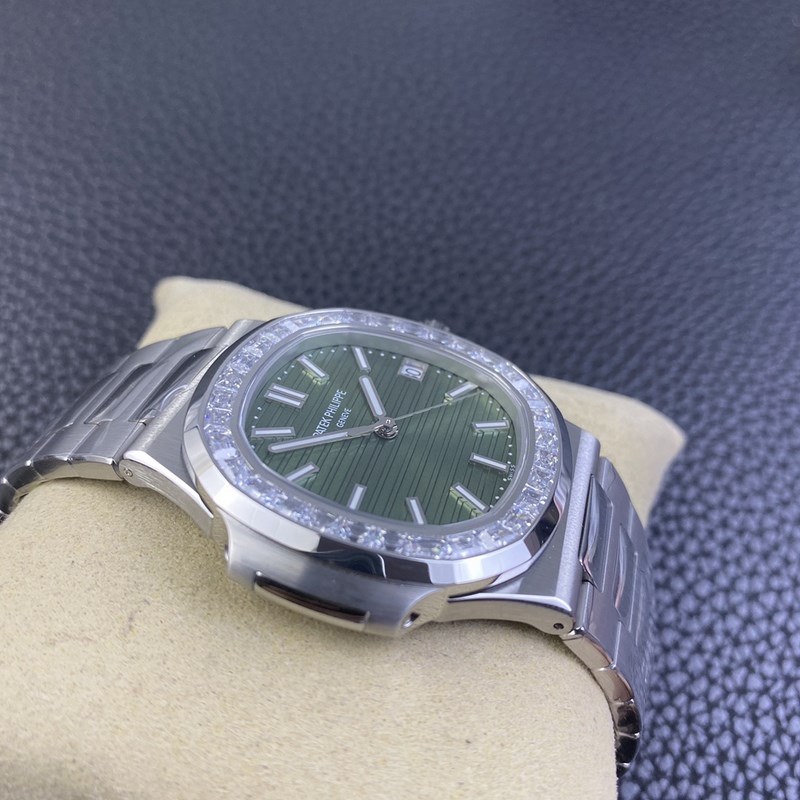 Patek Philippe 5711 oliivinvihreä kellotaulu T-neliötimanttikotelolla 904 teräs 40 mm paksuus 8,3 mm