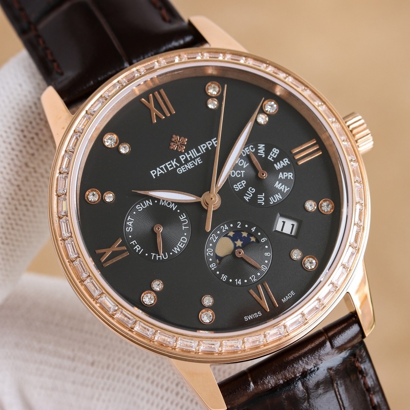 Tehdaslaatuinen, huippusarja uusi Patek Philippe monimutkainen toiminto kronografisarja on markkinoilla Patek Philippe aristokraattinen taideteos (päivitetty versio parannus: kuori on ohuempi kuin vanha versio, lasi on päivitetty kulutusta kestäväksi ja pudotuksenkestäväksi ja sisäkansi on päivitetty teräksiseksi sisäkuoreksi kuin vanha versio; kellon ulkoasu ja logo ovat täydellisempiä, tekstitys ja ulkonäkö) 9100 monitoimiliike (0 korjaus) -toiminto (24 tuntia, viikko, tähti, kuukausi) tuotu 316 ruostumatonta terästä käyttäen 18k laadukasta uunin tyhjiöpinnoitusta Italiasta tuodulla vasikannahalla, alkuperäisellä taitettavalla soljella, koko 40 mm. Kulutusta ja naarmuuntumista kestävä safiirilasi Super vedenpitävä 50 metriä Yksinkertaista, mutta ei yksinkertaista Et voi koskaan omistaa Patek Philippeä, vaan pidät sen jälkeläisillesi. (Huolellinen lupaus: tuotteen todellinen kiilto ja tuntu ovat parempia ja hienompia, kellotaulu on todenmukainen, ja kuori ja kansi ovat kaikki mestaritason valotarkastuksia, sekä uusi aikakausi koneellisen korkean teknologian takomista, järkyttävää ja jaloa. Ansaitset suuren tehdasrakennuksen