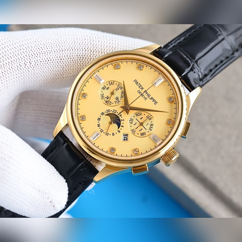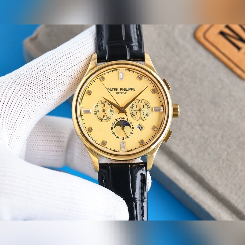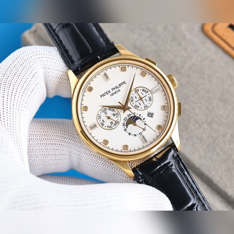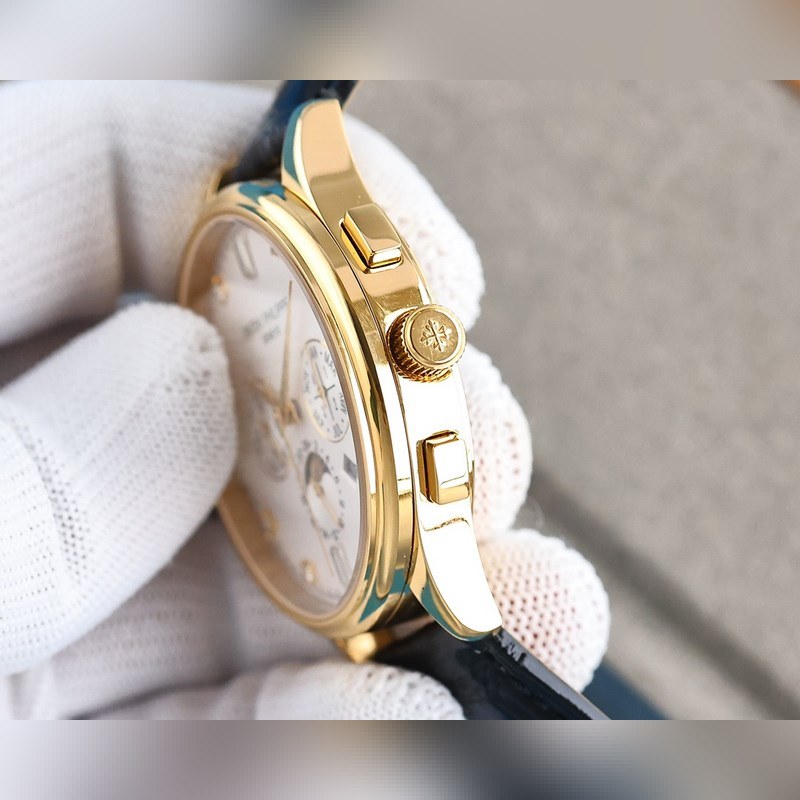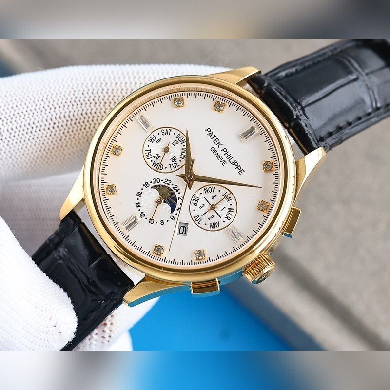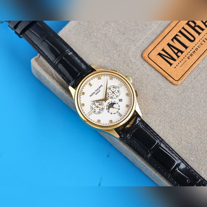 1 Tyyli käyttää 9100 monitoimista tuotua mekaanista liikettä ilman korjauslaatua 2 Koko kotelo käyttää ainutlaatuista CNC-hienohiontaprosessia, joka on täsmälleen sama kuin alkuperäinen prosessivaikutelma, ja yleinen kirjaimellinen rakenne on parempi. Koko 42mm 3 Kellotaulun toimintoja ovat: päivämäärä, viikko, kuukausi, todellinen aurinko, kuu ja tähdet pyörivät, elegantti aristokraattinen tunnelma yhdistettynä vertaansa vailla olevaan visuaaliseen nautintoon, salaperäinen ja elegantti, hieno ja poikkeuksellinen 4 Tyyli on yhdistetty italialaiseen lehmännahkaan, jotta ranteesta tulee mukavampi, ja kello käyttää alkuperäistä tappisolkea, joka on antelias. 5 Kukaan ei todellakaan omista Patek Philippeä, vaan pitää sen vain seuraavalle sukupolvelle