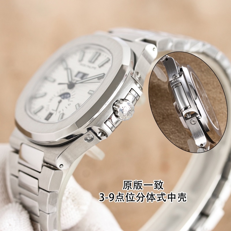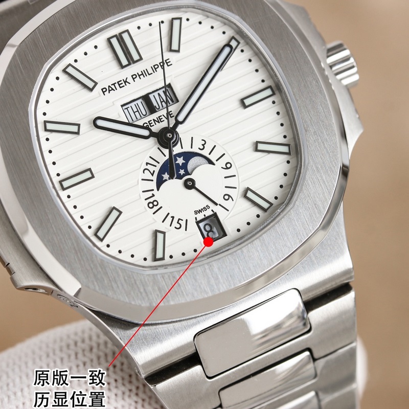 Nautilus-sarjassa on pyörivä ikkunakotelo, joka on suunniteltu johdonmukaisesti. Aito ammattitaito on sopusoinnussa taonta- ja kiillotusprosessien käytön kanssa terävän kontrastin muodostamiseksi, ja aidon tuotteen jokainen yksityiskohta on entisöity 1:1.