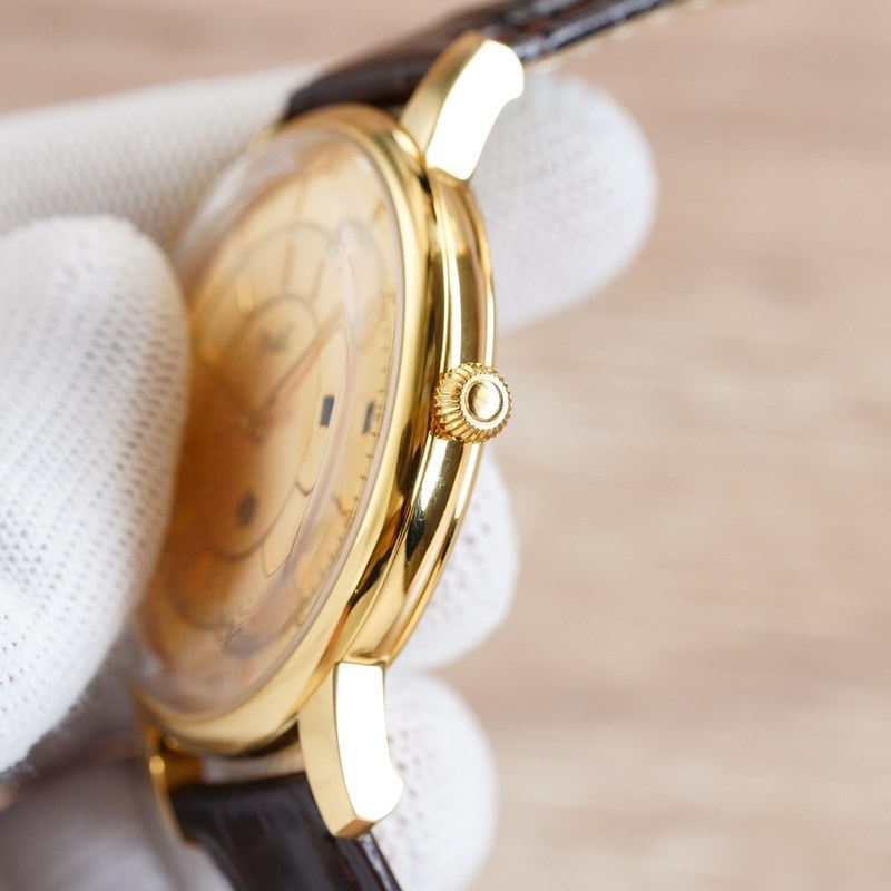 Piaget Altiplano klassisen ultraohuen kellon päivitetty versio on varustettu japanilaisella 9015:llä. Tee kellosta ohuempi, taajuus on 28 800 tärinää tunnissa. Kotelon neljää kulmaa on parannettu, kellotaulun väri ja kaarevuus ovat yhtenäisempiä, 12 vaakaa on kiillotettu hienovaraisemmin, markkinoiden eksklusiivinen uusin kattilan kansimateriaali, super 3D-stereoskooppinen tunne, erittäin ohut käsityö, halkaisija 42 mm, haalari lähempänä tiskiä italialaisen lehmännahan ansiosta, jotta ranteesta tulee mukavampi. Tehtaan tuottama Heritage-sarja yhdistää Piaget’n klassisen tyylin ainutlaatuisimman DNA:n. Se on symboli Vacheron Constantinin äärimmäisestä eleganssista ja ilmentää täysin edistyneen kellonvalmistuksen puhtainta perinnettä. Sopii kaikenlaisiin liiketilaisuuksiin, yksinkertainen ja hienostunut menettämättä eleganssia.