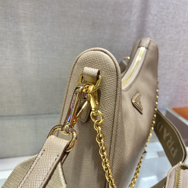 PRADAn uusi kolmi-yhdessä kultalaitteisto mallinumero: 1BH204 täysnahka/kultalaitteisto, nylon Hobo-käsilaukku/kainalolaukku