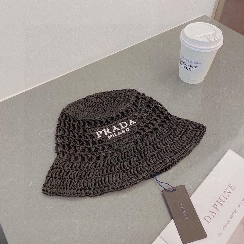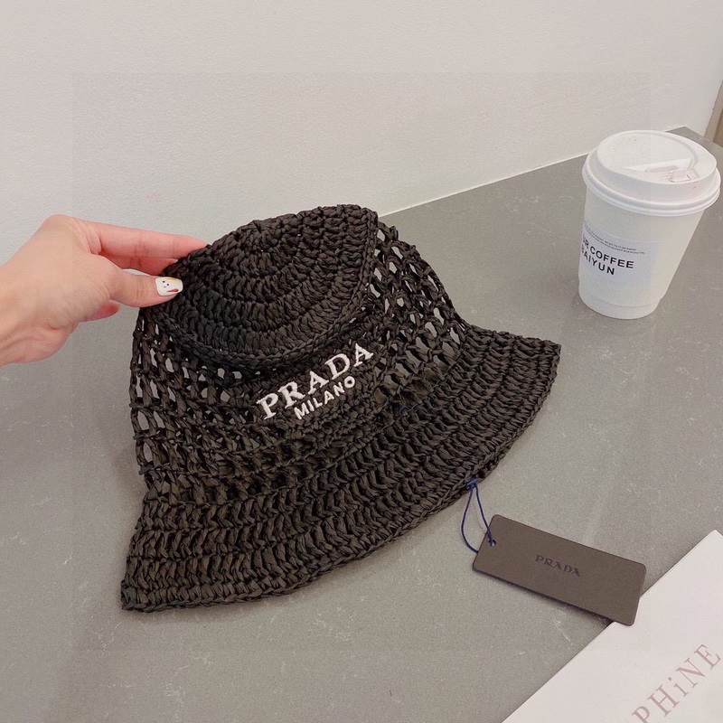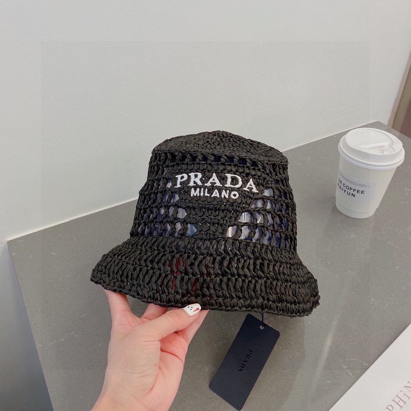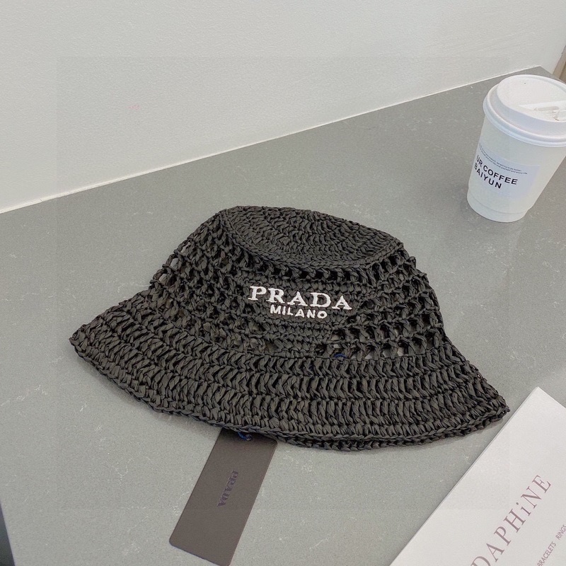 PRADA Prada olkihattu, ämpärihattu, käsinkudottu, 2023 virallinen uusi tyyli, kirjailtu logo, mustavalkoinen