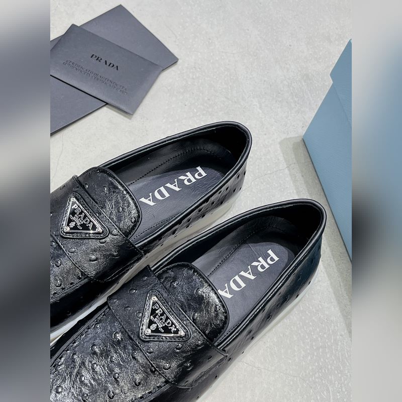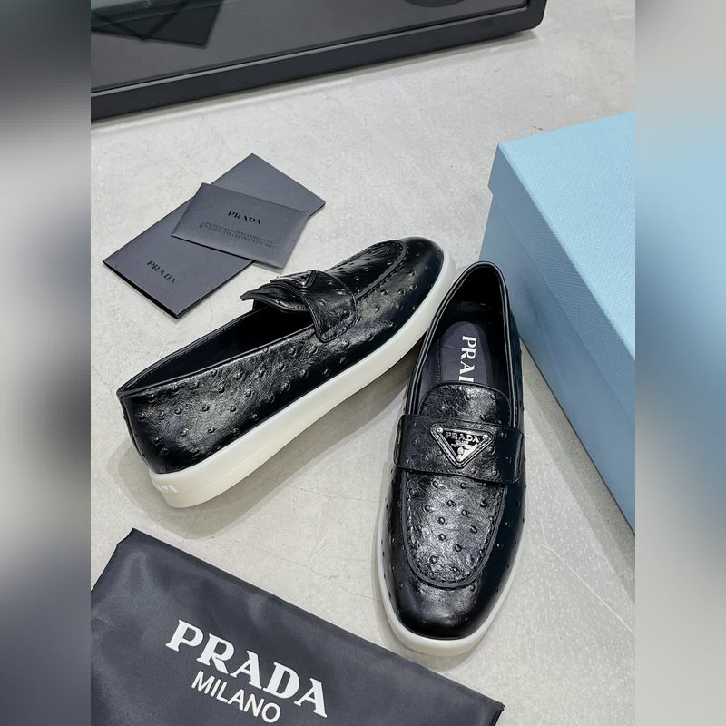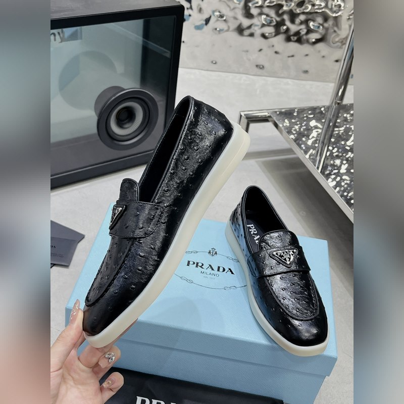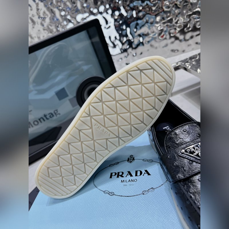 Prada-pari Prada 2023 uusimmat loaferit ja puolitossut, suosittu sarja, tulkitsee kaupunkimuotia, design korostaa toiminnallisuutta ja tekniikkaa, uusi kohokuvioitu kumikolmiologo näyttää brändin ikoniset elementit