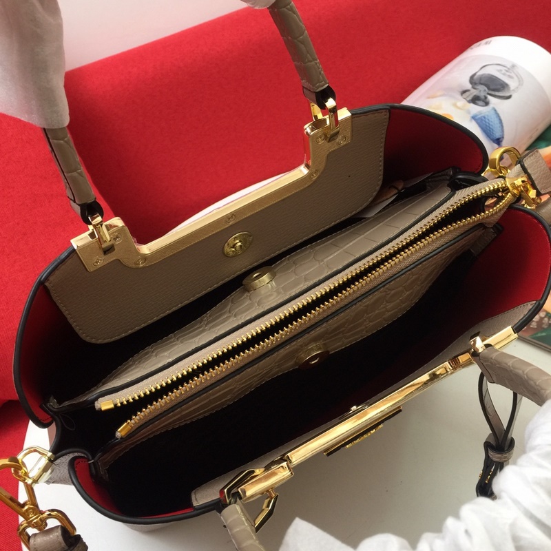 Valmistettu tuontivasikannahasta, jossa on kiiltävä krokotiilikuviointi, pehmeä rakenne. Muodikas ja tyylikäs laukkumuoto [Rose] Pelaa muotitrendien kärjessä. Pehmeä ja mukava koskettaa, täydelliset yksityiskohdat, suuri kapasiteetti, sisäänrakennettu väliseinä, varustettu pölypussilla, kaikki sertifikaatit ovat saatavilla, vaativat korkeaa laatua