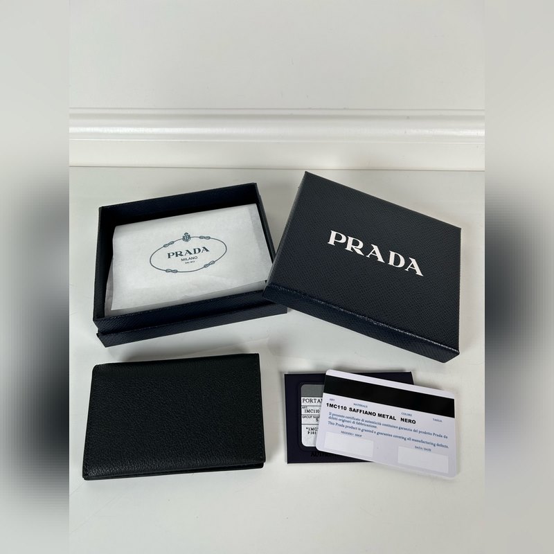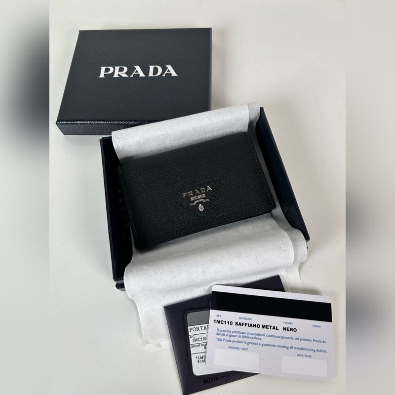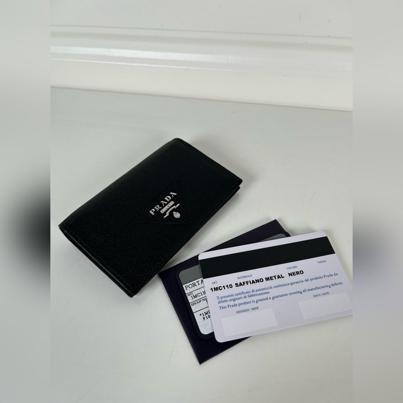 Prada klassinen korttiteline, malli 1MC110, valmistettu hienosta hirvennahasta, koko 6,5×2,5×11cm, snaPrada suljinrakenne, 3 korttipaikkaa tai seteleitä. Tämä hieno korttiteline on pieni ja kätevä, riittävän kapasiteettinen, helppo säilyttää pusseissa ja sitä voidaan käyttää myös yksittäisenä esineenä päivittäisiin retkiin. Kuuma myynti, oikea kuva, mitä näet, sen saat