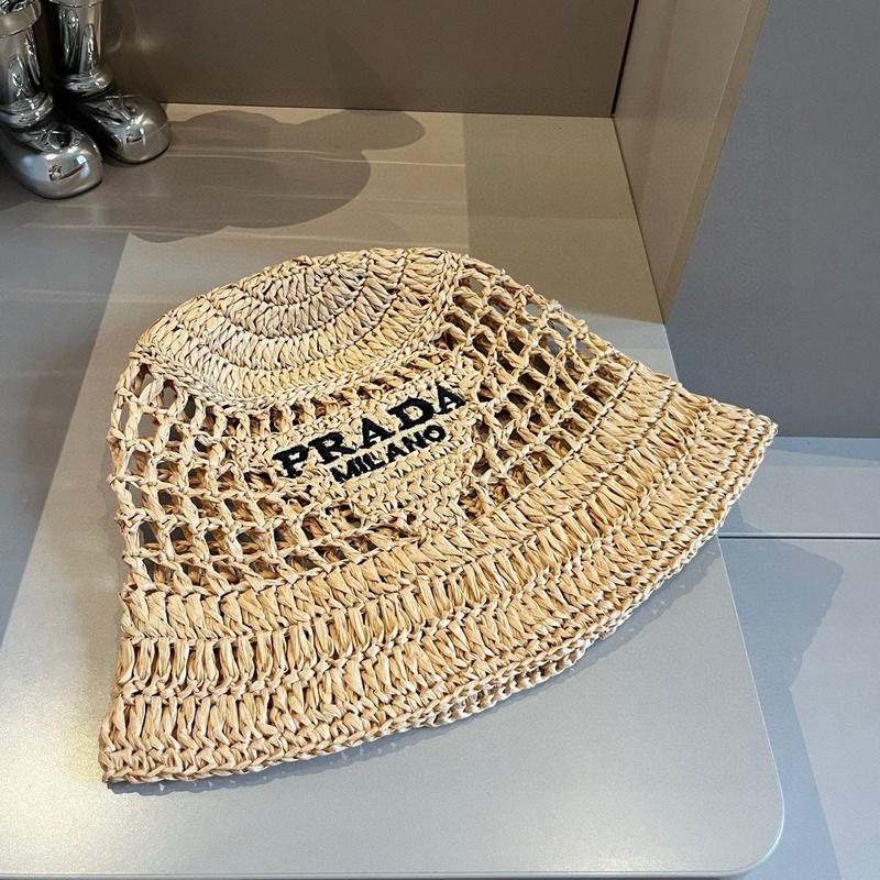 PRADA Prada olkihattu, ämpärihattu, käsinkudottu virallinen uusi tyyli, kirjailtu logo, mustavalkoinen