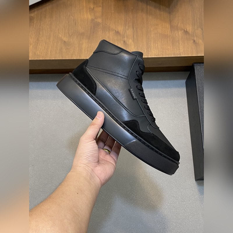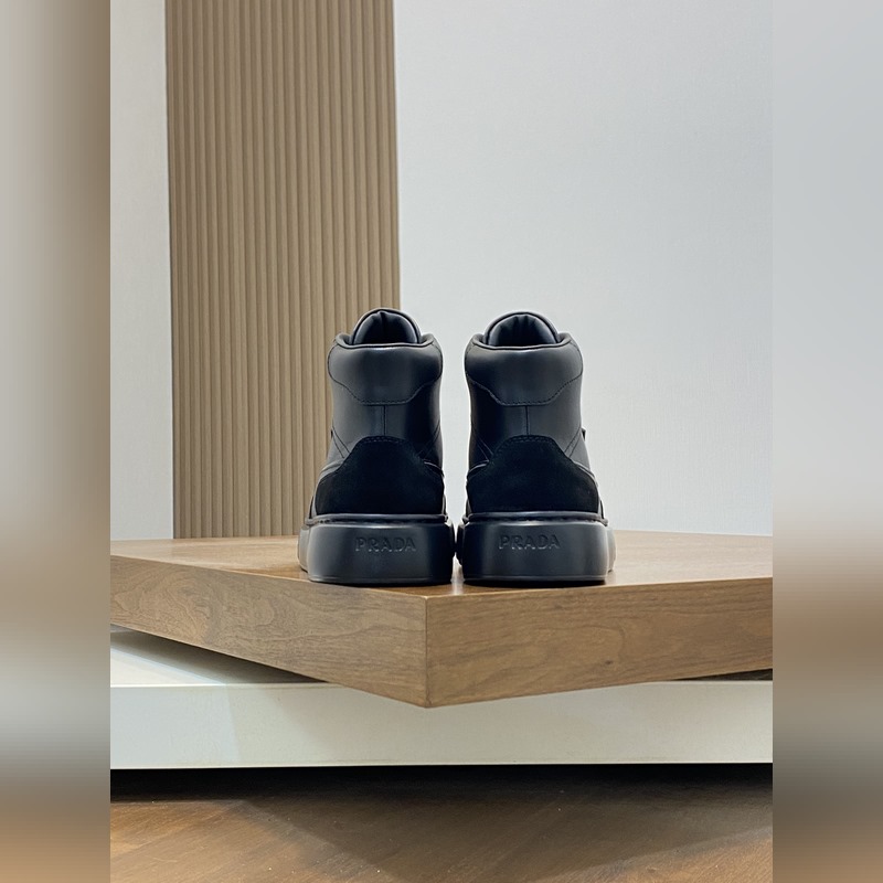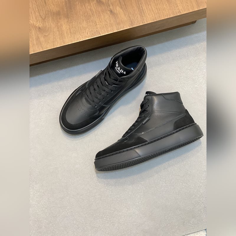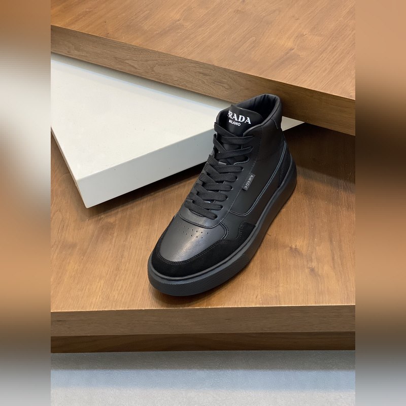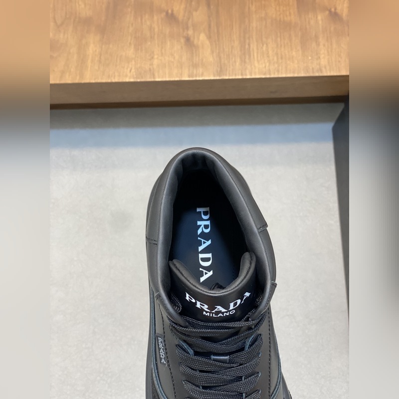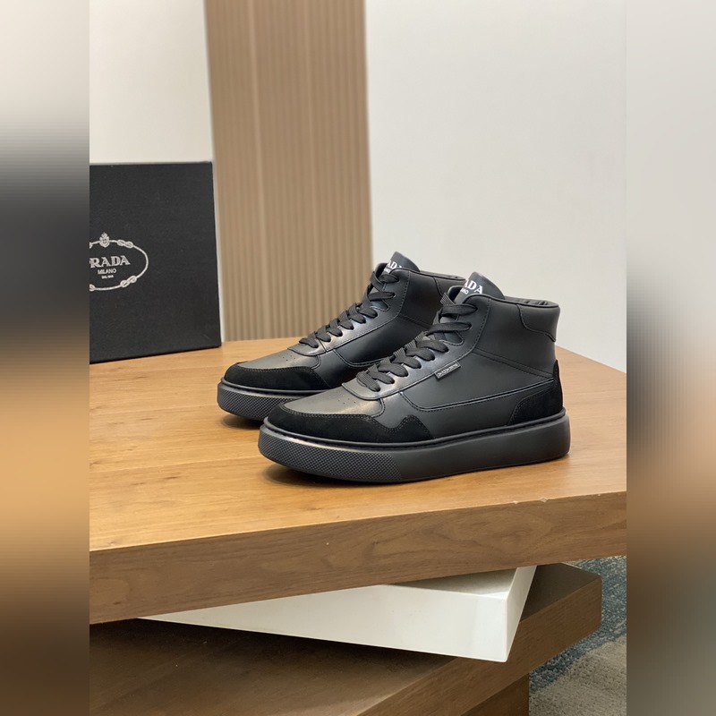Prada miesten uudet korkeat-toPrada-nahkaiset vapaa-ajan tennarit