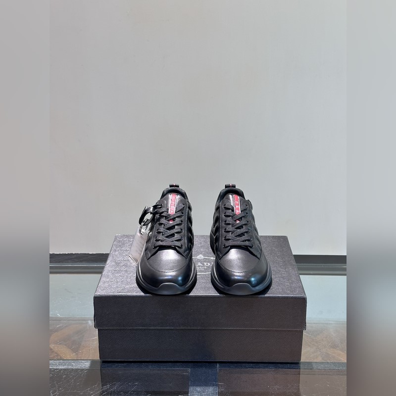 Prad* Prada huippuluokan miesten nauhalliset uPrada-nahkaiset vapaa-ajan urheilukengät, päällyskerroksisesta lehmännahasta, erittäin kuvioitu, vasikkanahkaiset jalkapehmusteet, liukumatonPrada-iskuja vaimentava kuvio, kevyt paksu pohja, aito näyttää paremmalta jalassa käytettynä Koot: 38-44 (45 mittatilaustyötä)