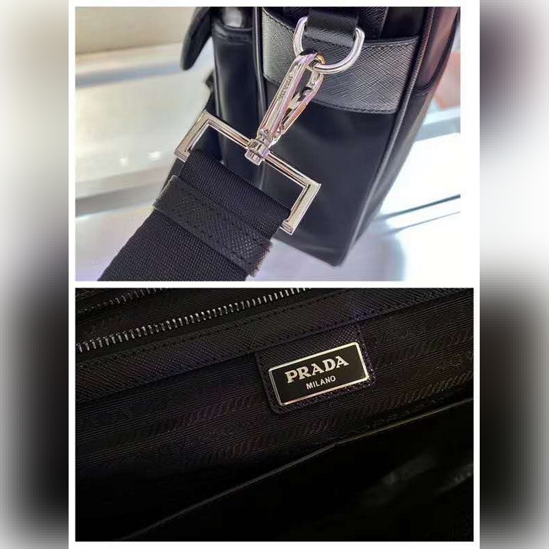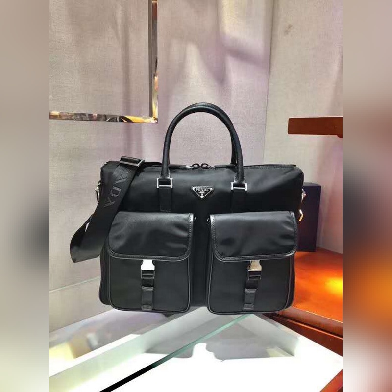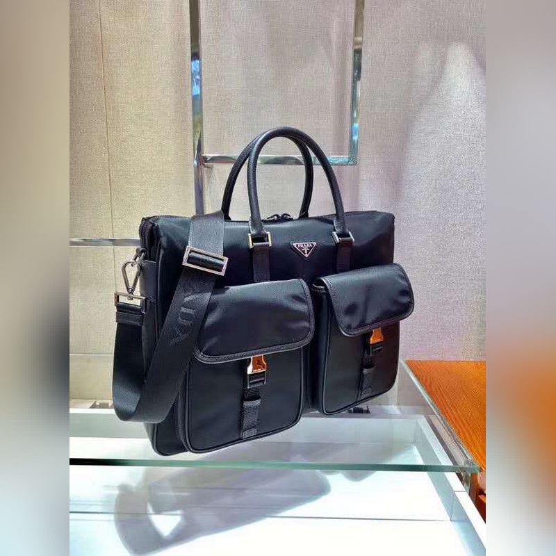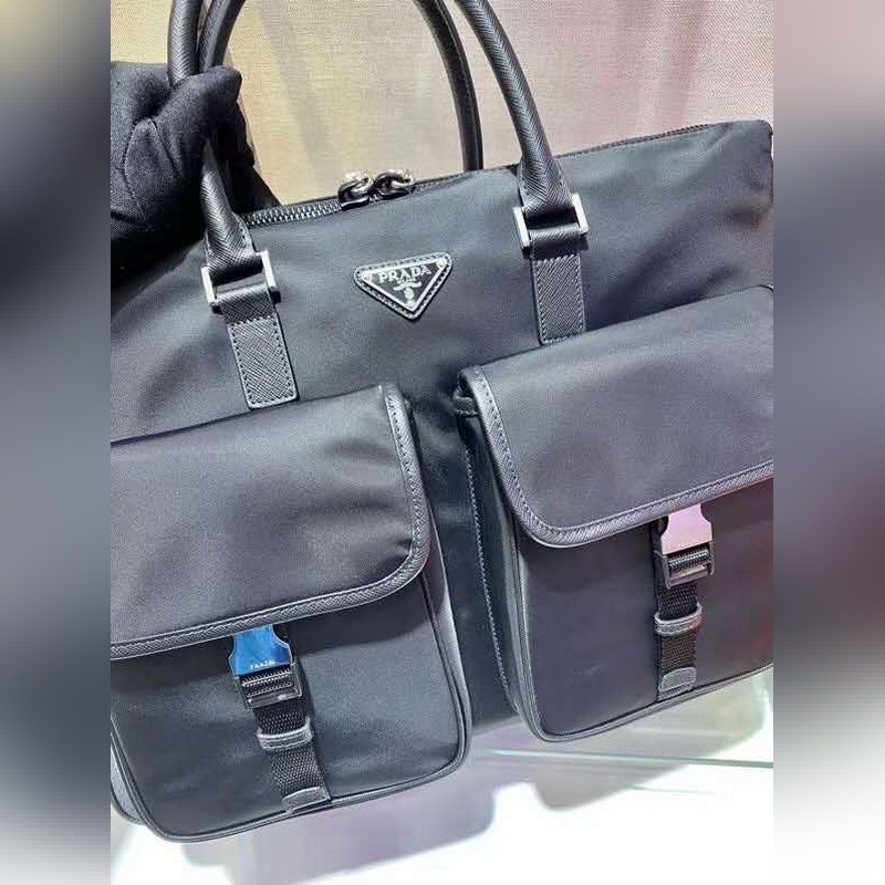 Tämä nailonsalkku on koristeltu Saffianon nahkaverhoilulla ja metalliosilla, ja se on varustettu kahdella kahvalla ja kahdella etutaskulla, joissa on sivusoljet. Irrotettava olkahihna korostaa toimivuutta. Takatasku voidaan sijoittaa vaunun koteloon, joka on erittäin käytännöllinen ja tilava. Ei ole ongelma kuljettaa sitä työmatkoilla/päivittäin. Jos sinun on oltava muodikas ja pitkä, miesten kannattaa kiirehtiä hankkimaan se