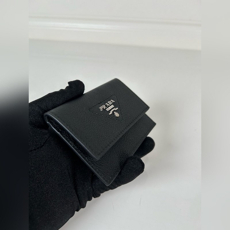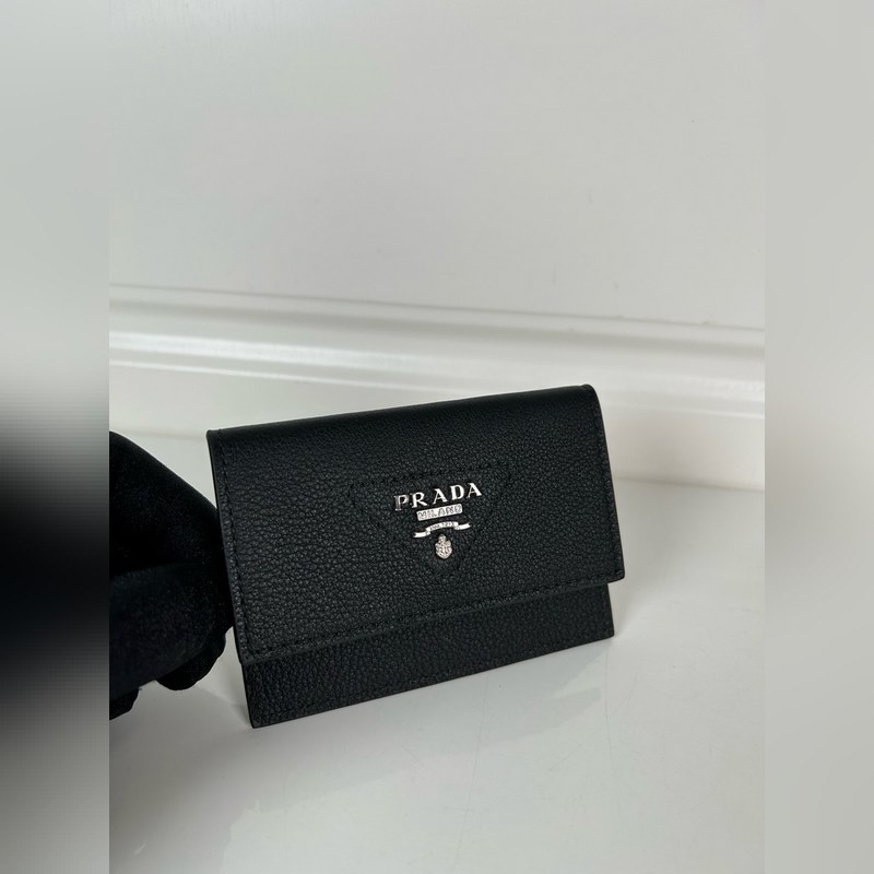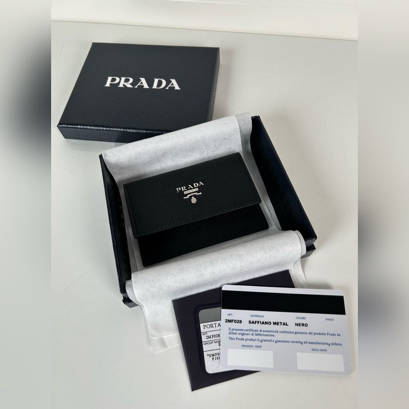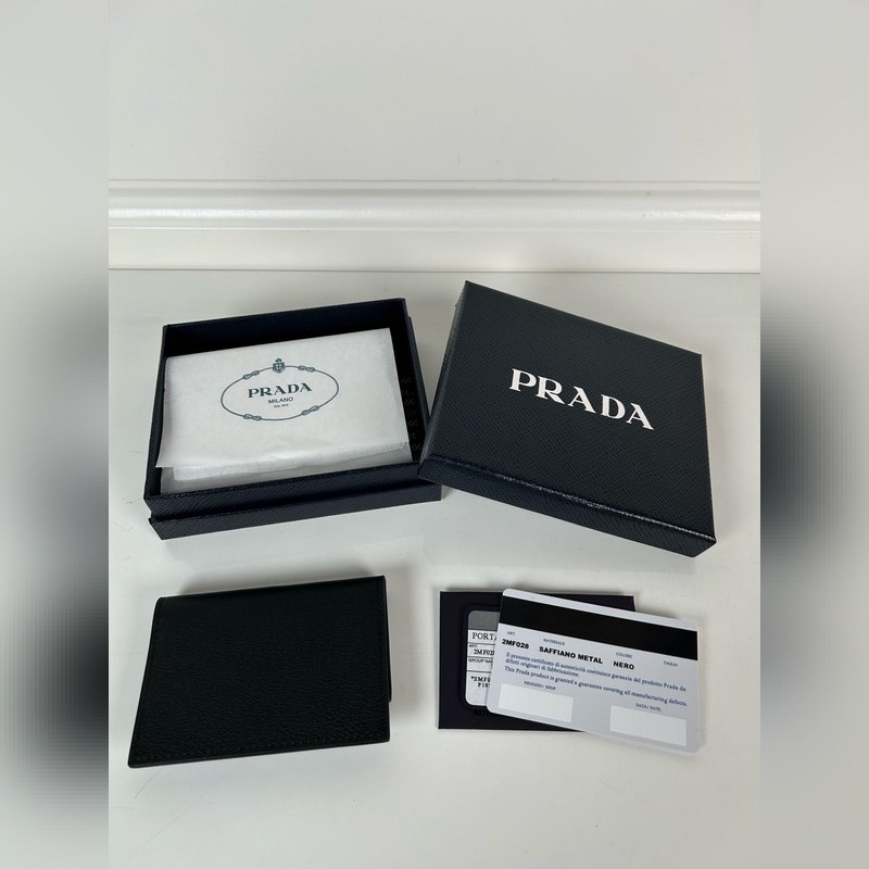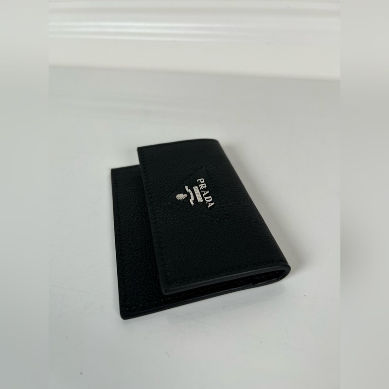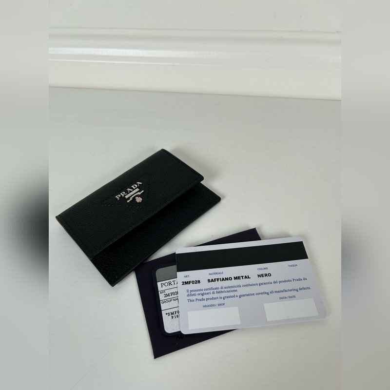 Prada Unisex -pieni korttiteline, musta, malli: 1MF028, alkuperäinen laatu, valmistettu tuodusta peurannahasta, 2 korttipaikkaa, mahtuu useita kortteja, koko 10 × 7 cm, valokuvaus oikeasta esineestä, mitä näet, saat mitä saat